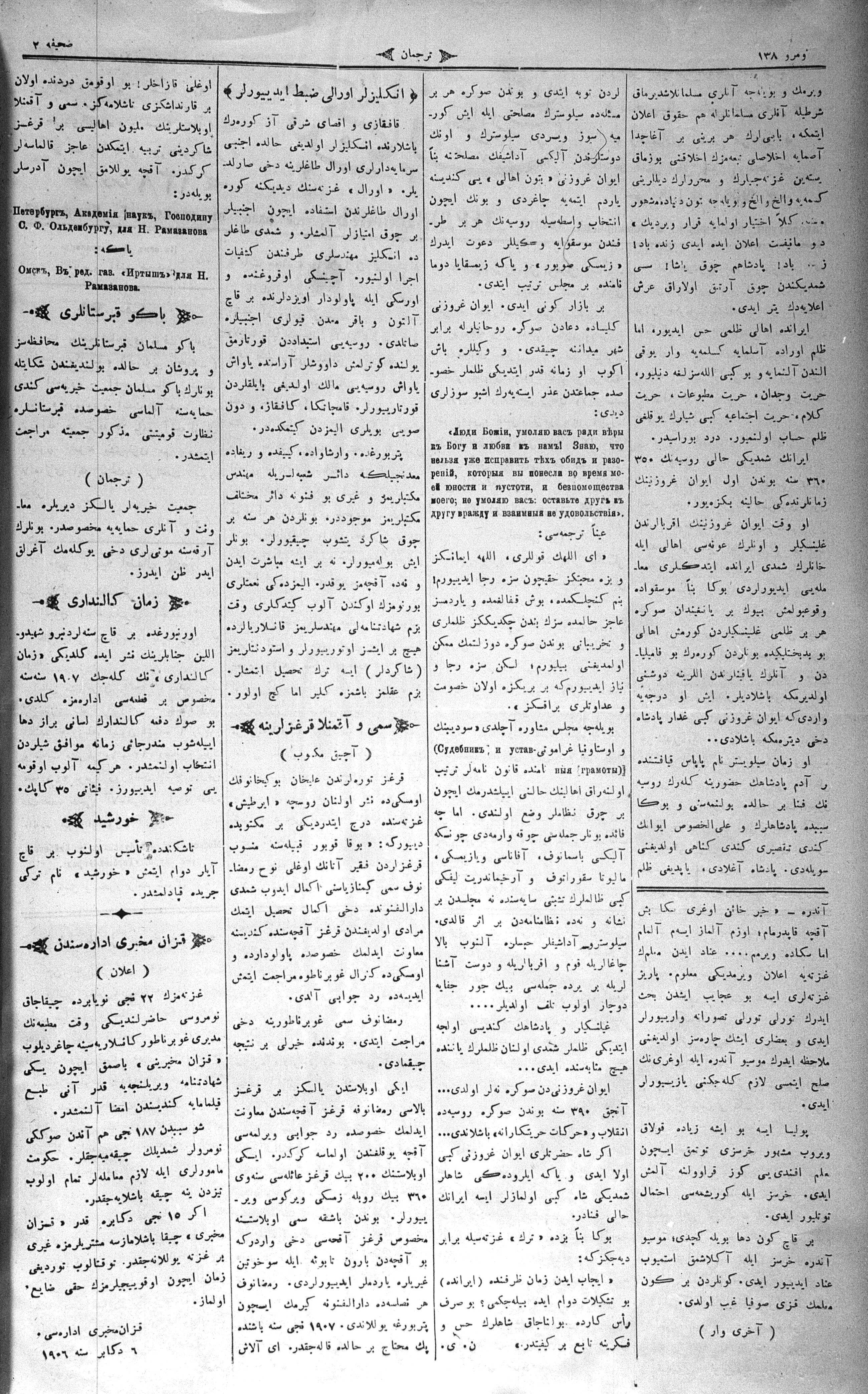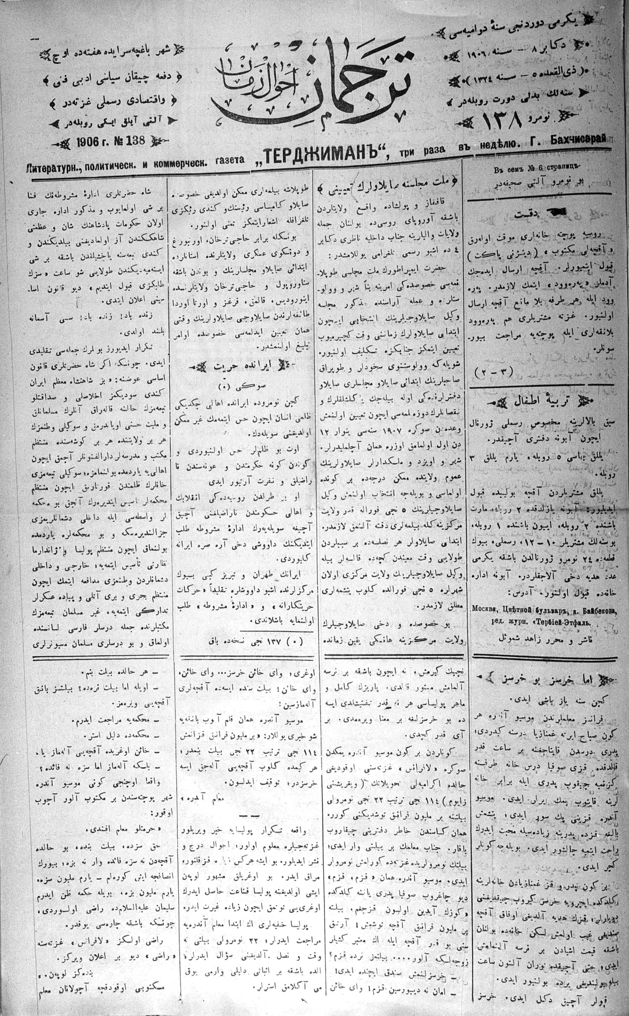 Tercüman, 08 December 1906 Year 24 No 138