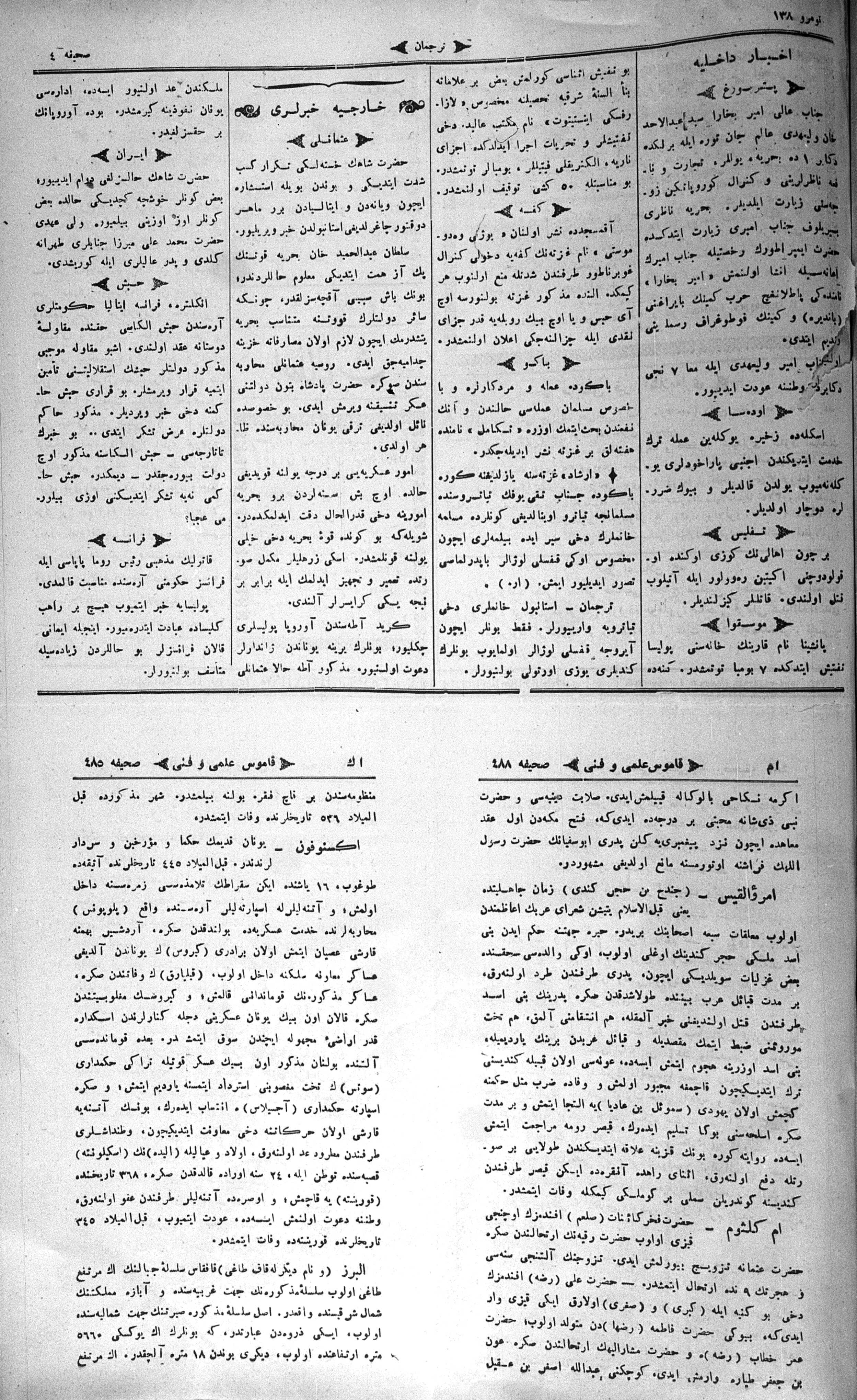 The name of the newspaper changed to Tercüman-ı Ahval-i Zaman in 1905. In 1909, it started to be published under its first name, Tercüman.
