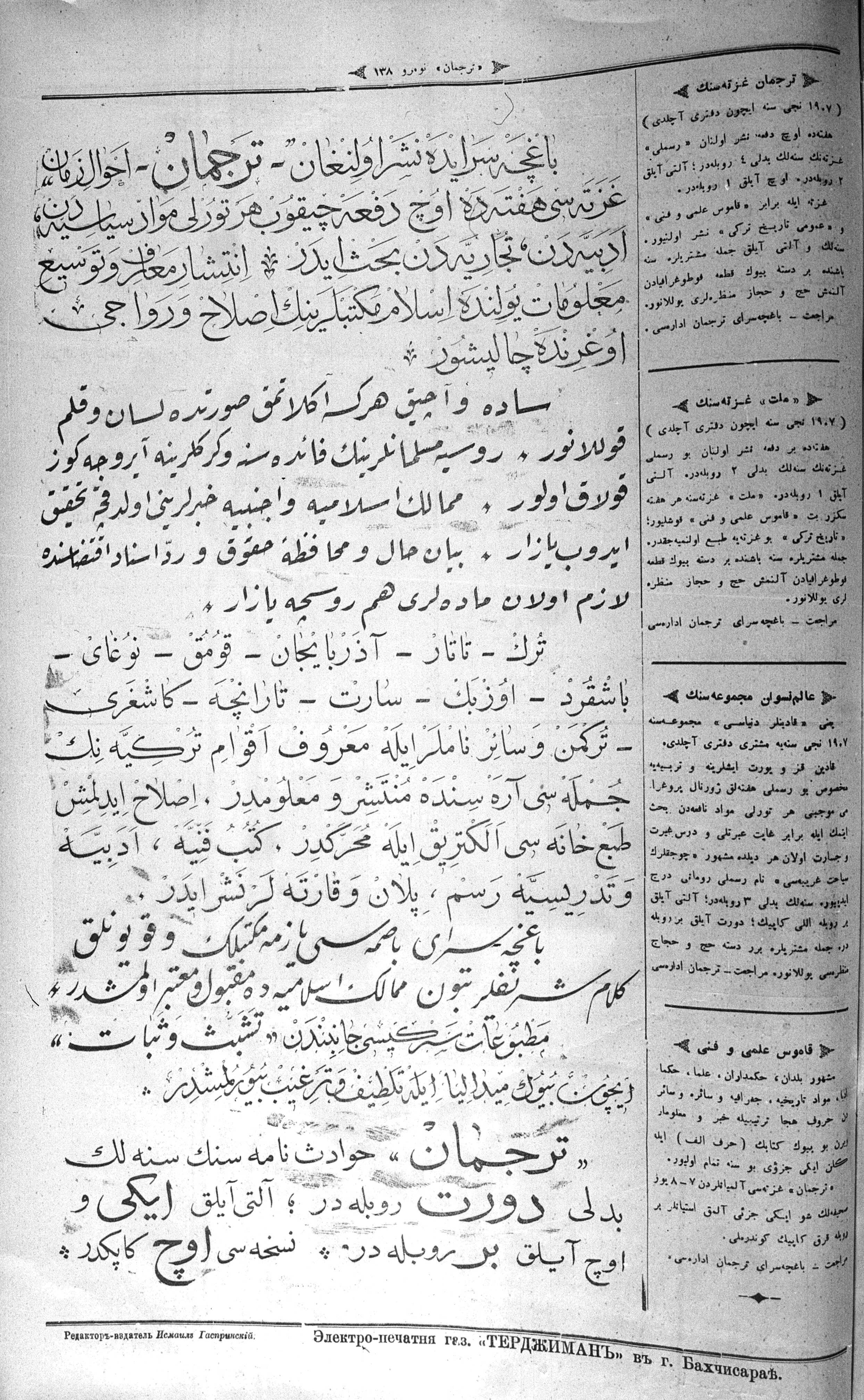 Turkish-Russian newspaper published in Crimea by İsmail Gaspıralı.