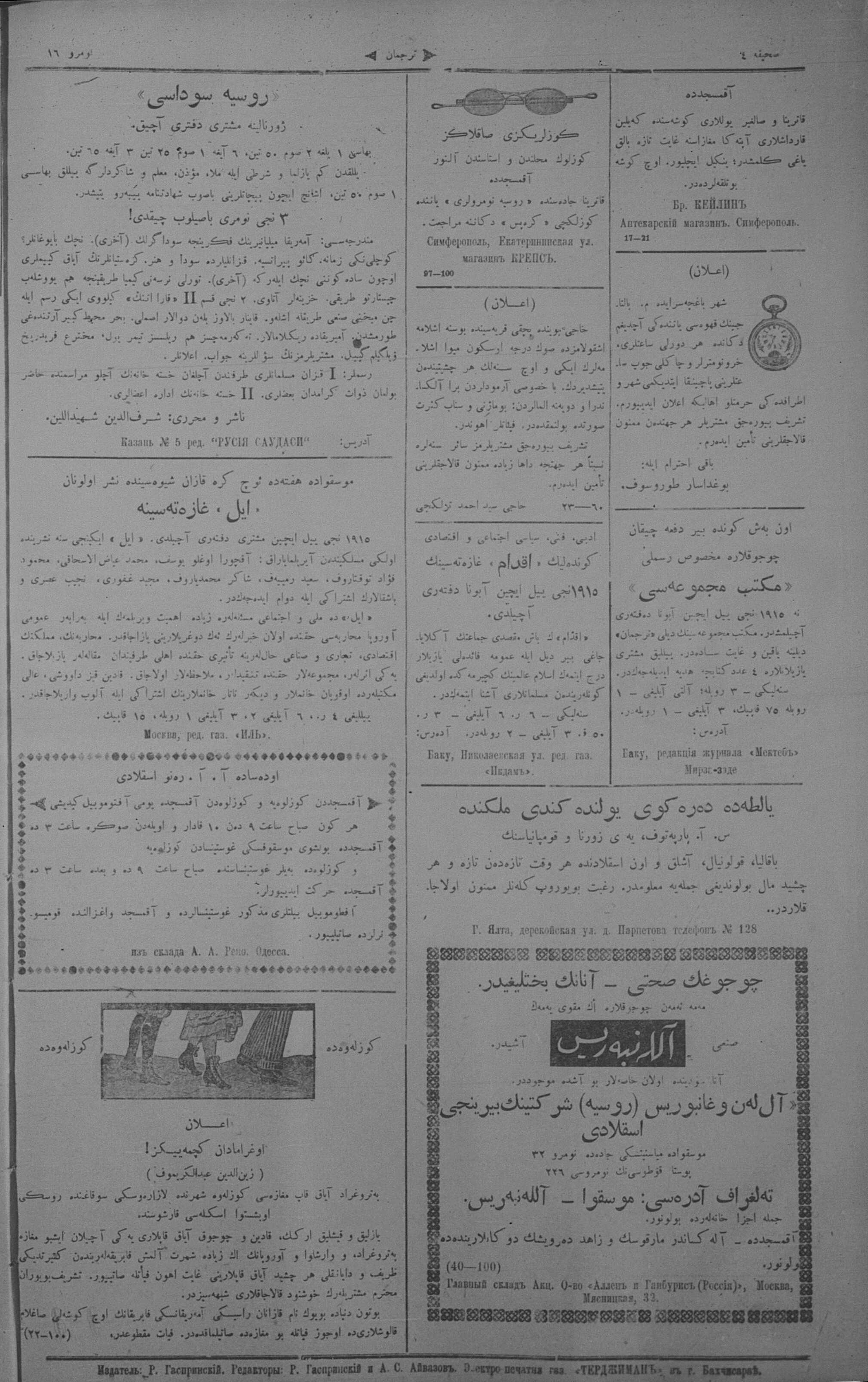 Turkish-Russian newspaper published in Crimea by İsmail Gaspıralı.