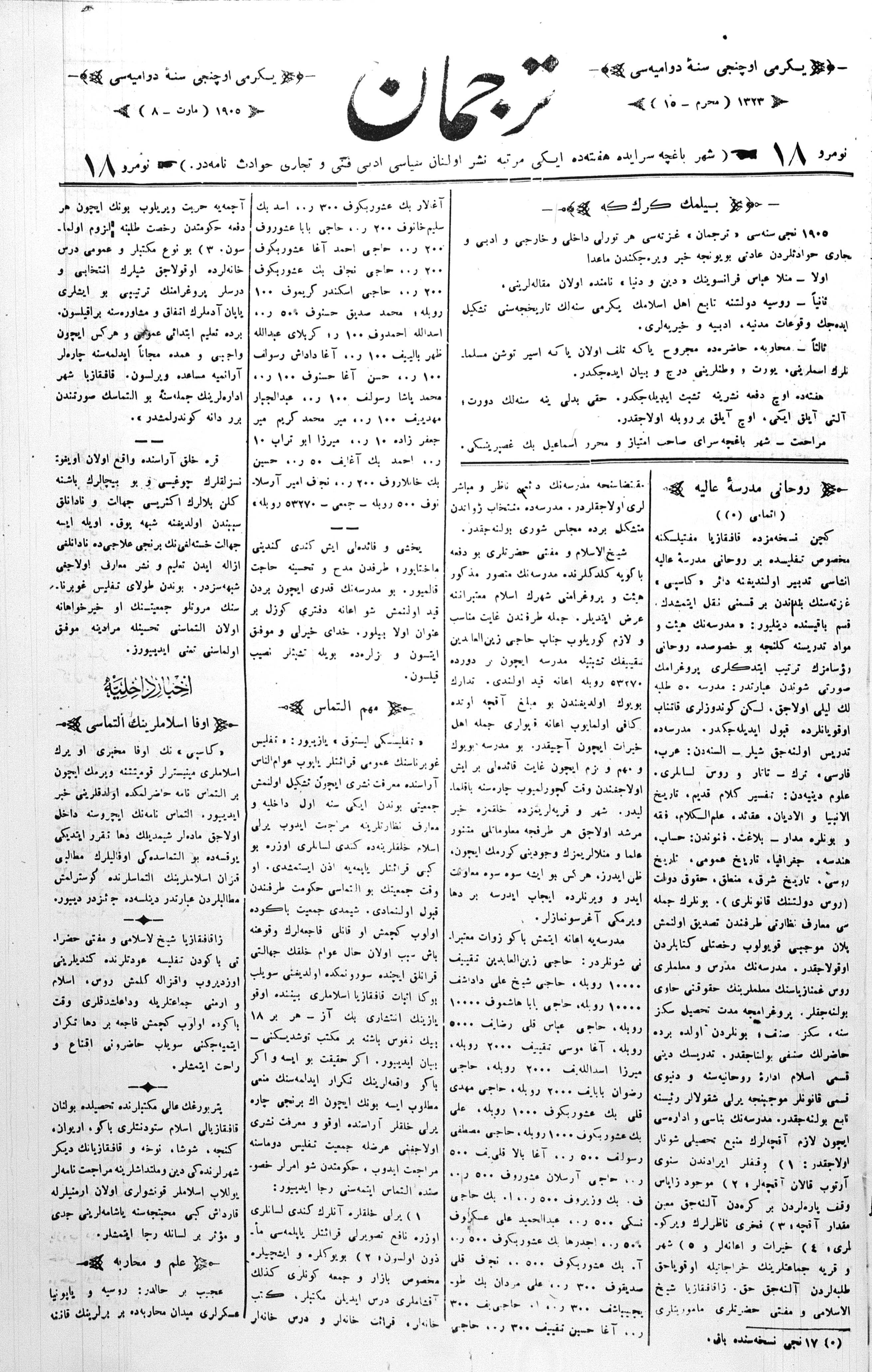Tercüman, 08 March 1905 Year 23 No 18