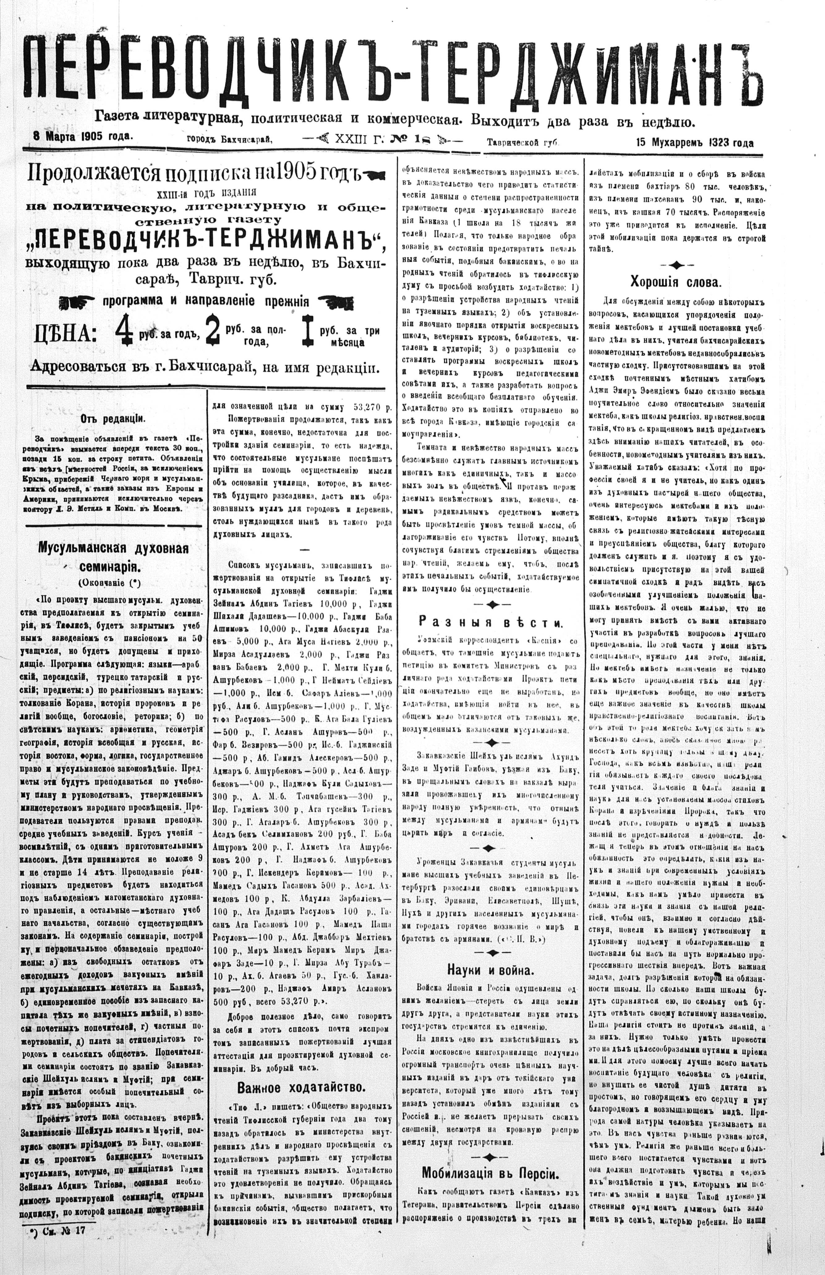 Turkish-Russian newspaper published in Crimea by İsmail Gaspıralı.