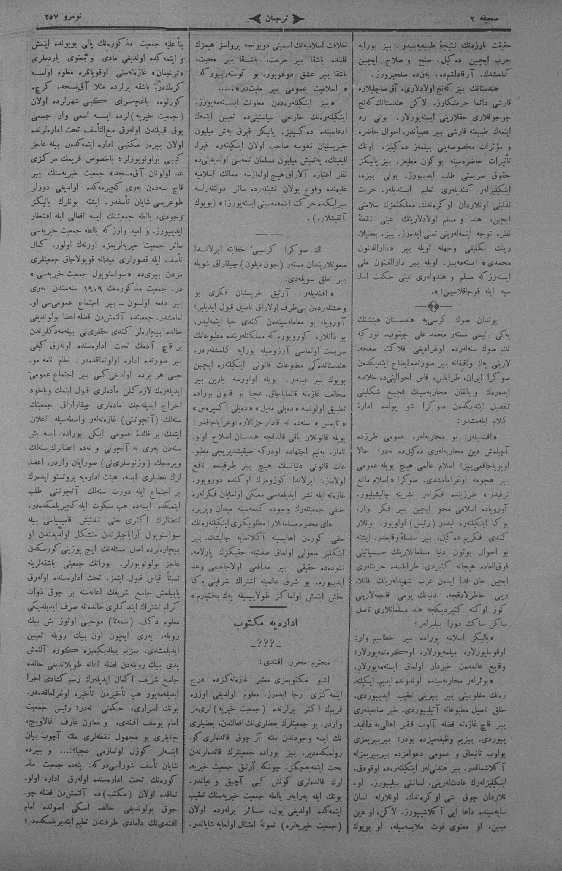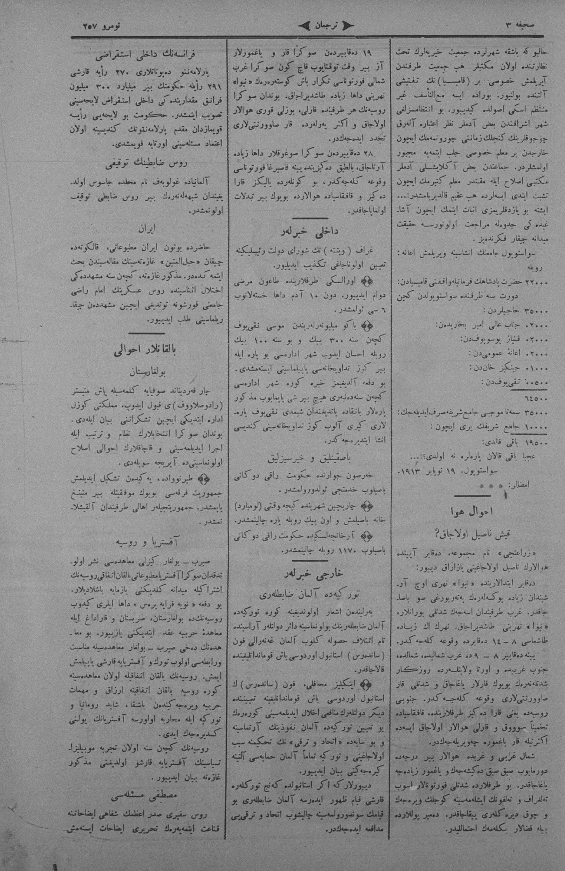 The name of the newspaper changed to Tercüman-ı Ahval-i Zaman in 1905. In 1909, it started to be published under its first name, Tercüman.
