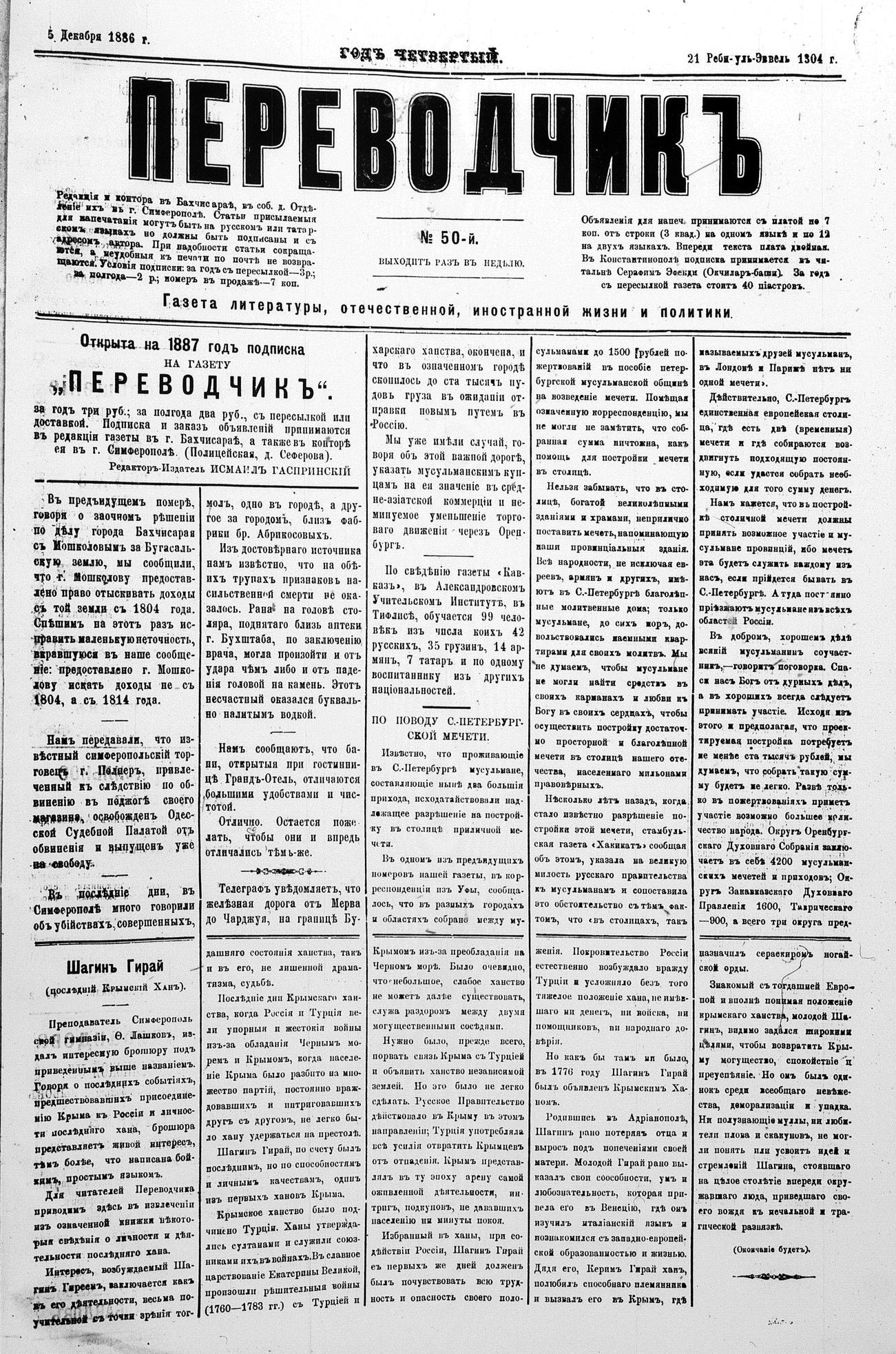 Turkish-Russian newspaper published in Crimea by İsmail Gaspıralı.