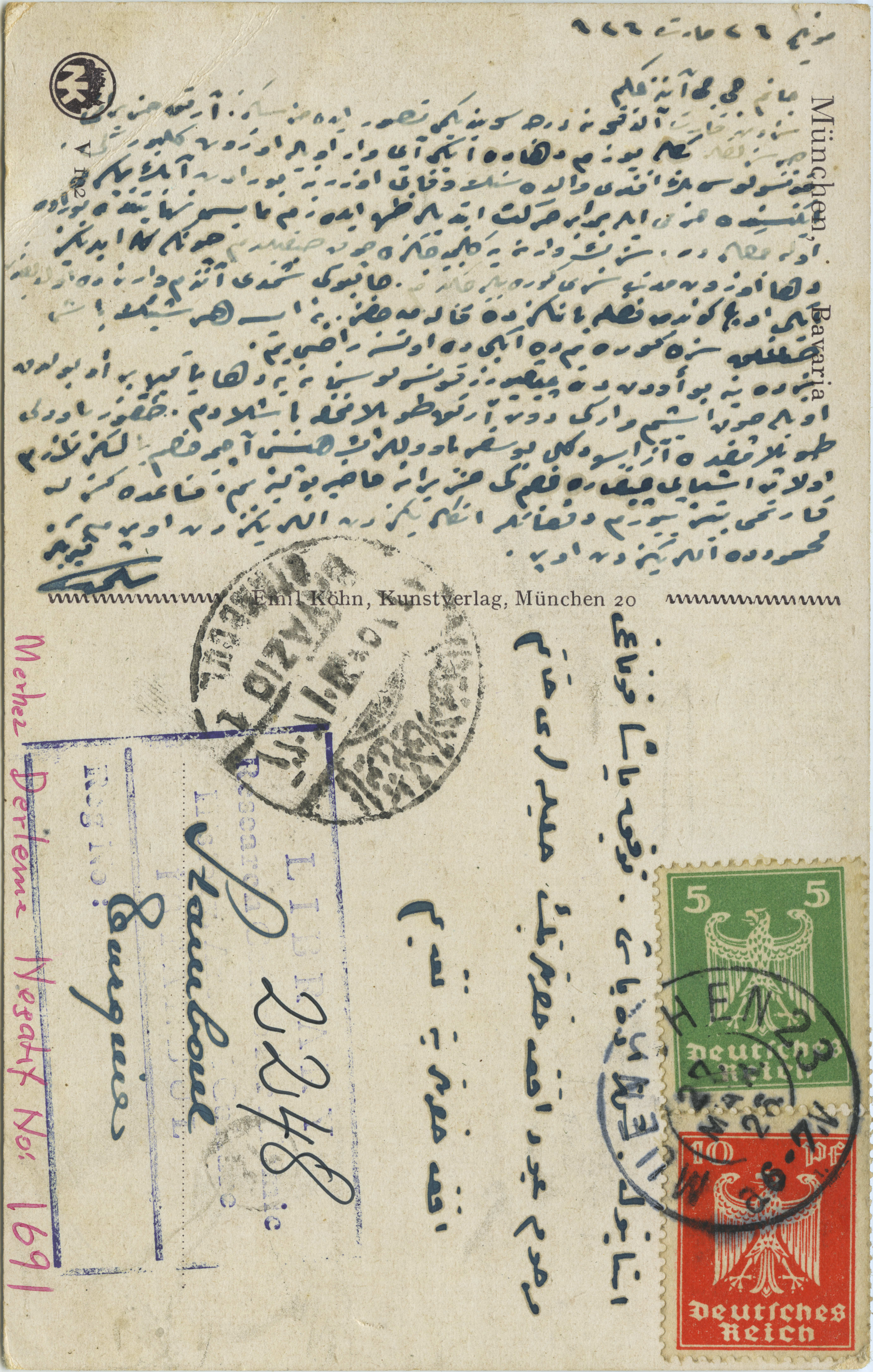 This is a postcard that Selma sent from Munich to her mother and to Abud Efendi's wife at the Tevfik Pasha Mansion in Şehzadebaşı in 26.03.1926, mentioning how happy she was to receive cards from them, that your neighbor gentleman would be coming here due to the death of his mother, that he was very sad that you couldn't come to Varna, that he had a lot of work to do, and that he was starting to pack up.