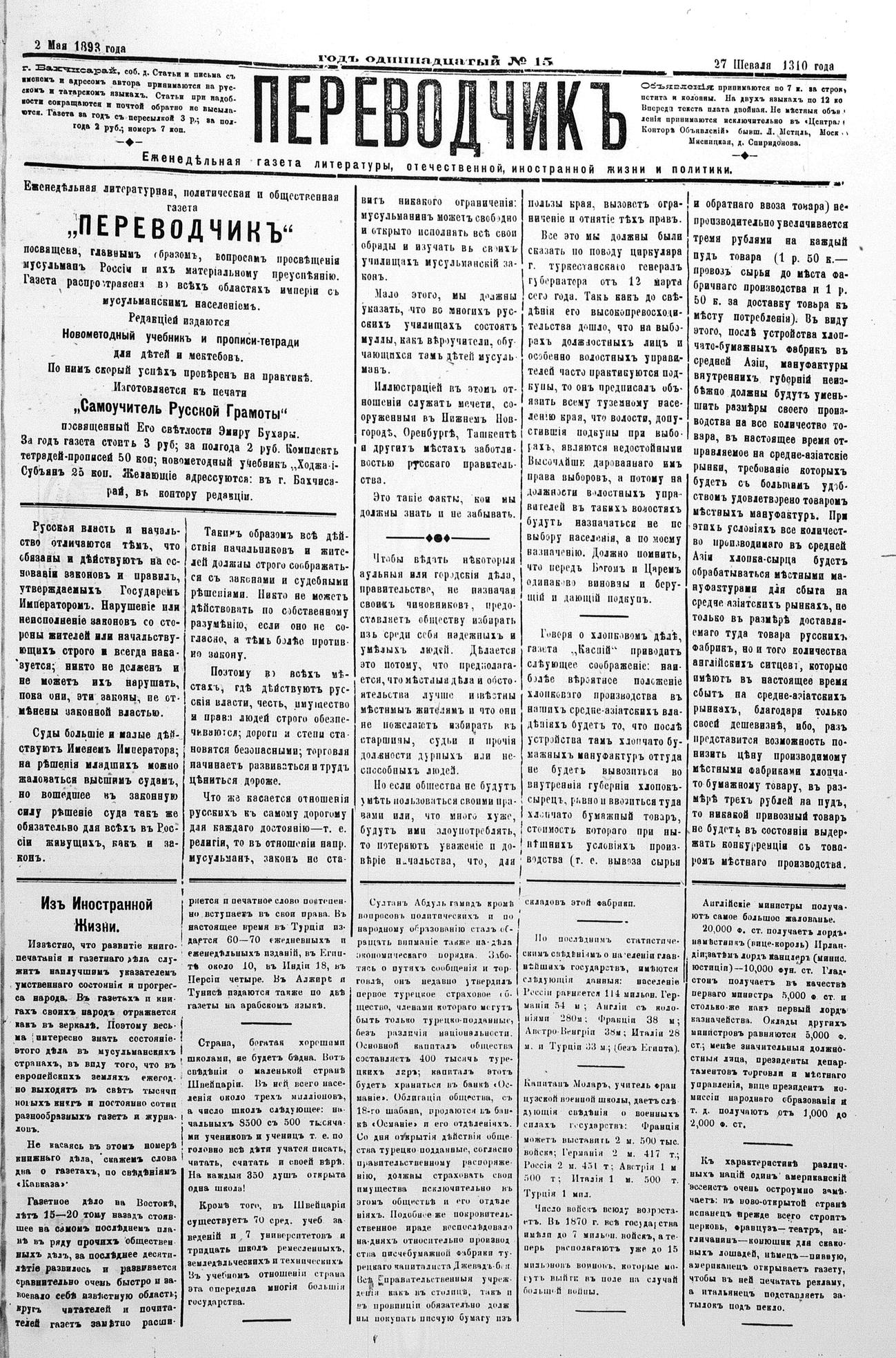 Tercüman, 02 May 1893 Year 11 No 15