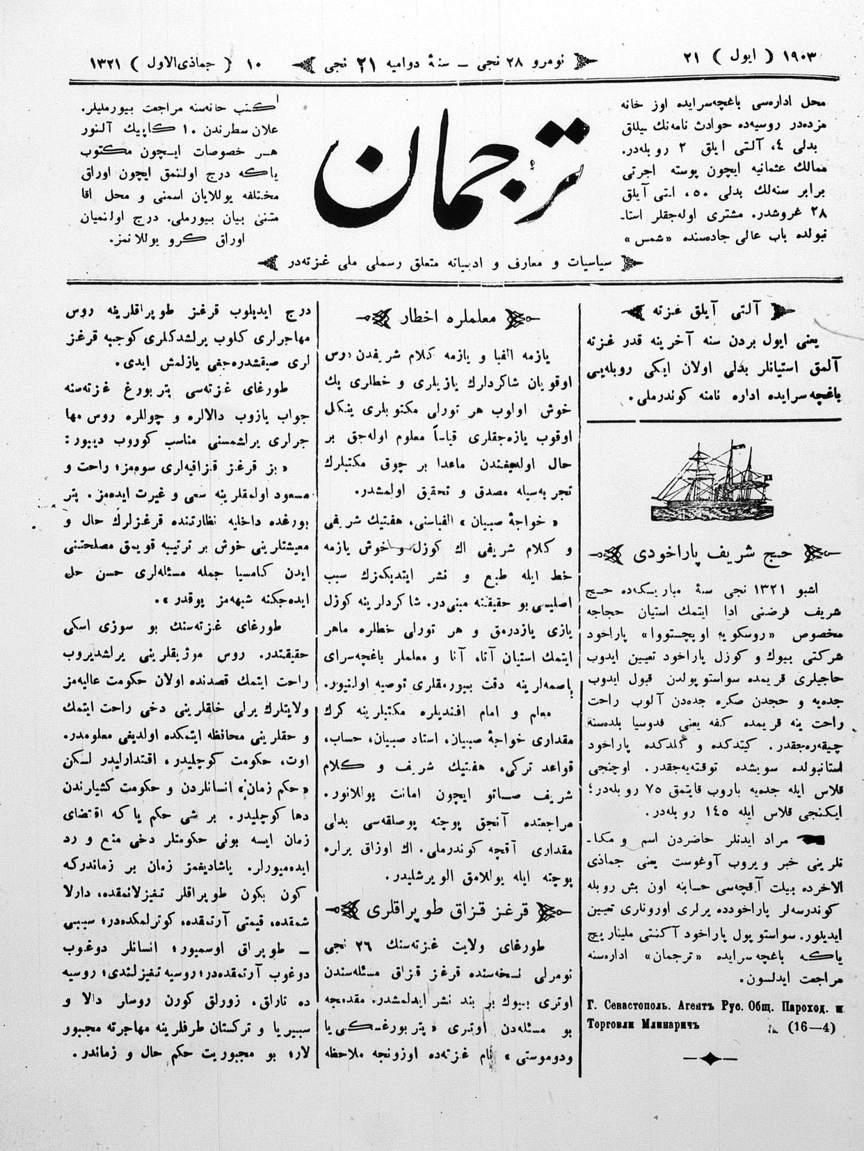 Turkish-Russian newspaper published in Crimea by İsmail Gaspıralı.
