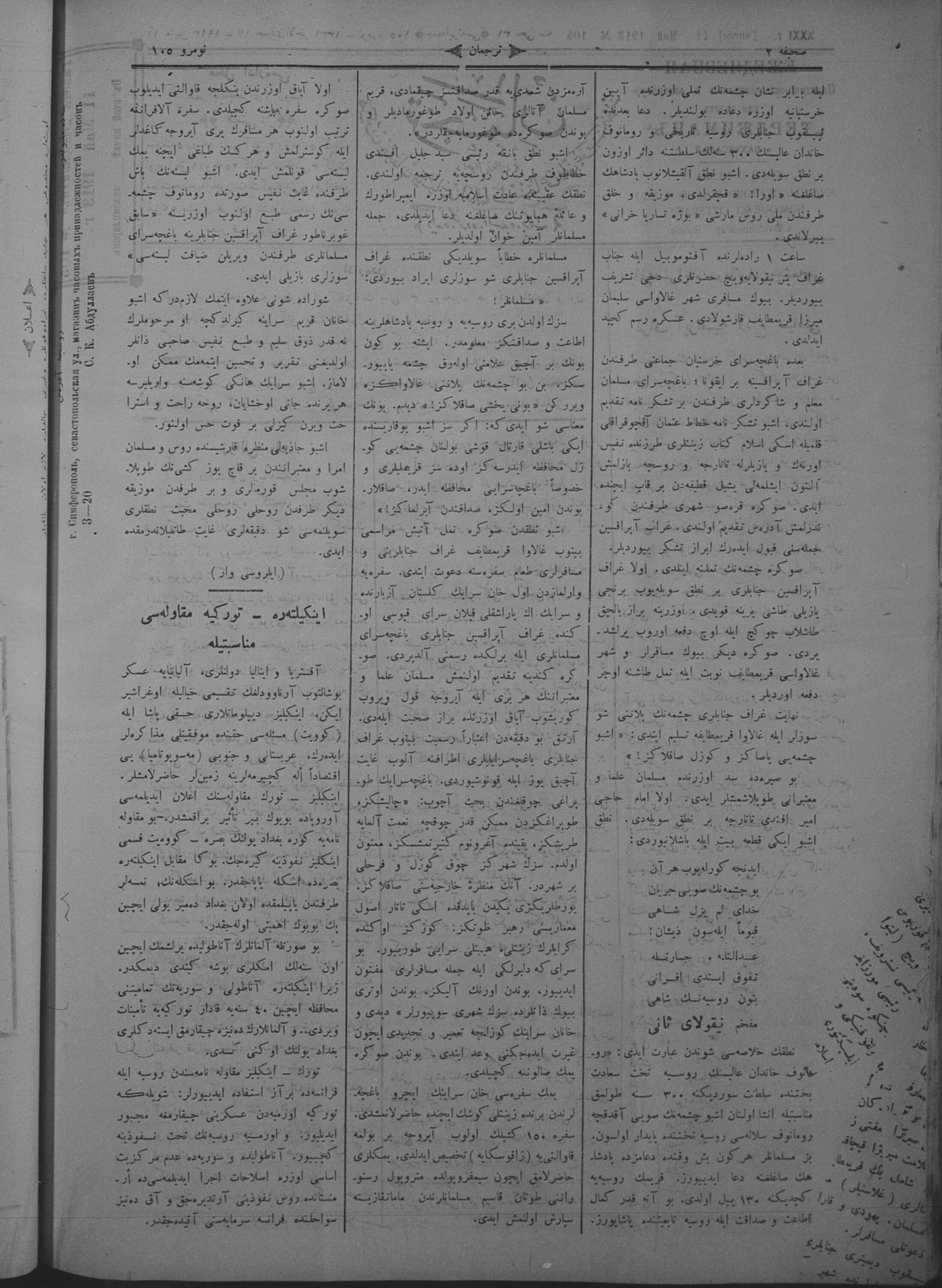 Tercüman, 11 May 1913 Year 31 No 105