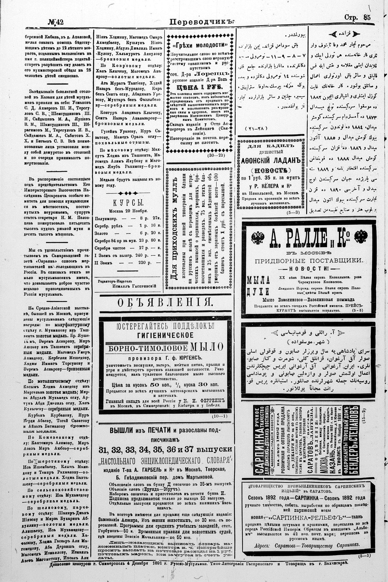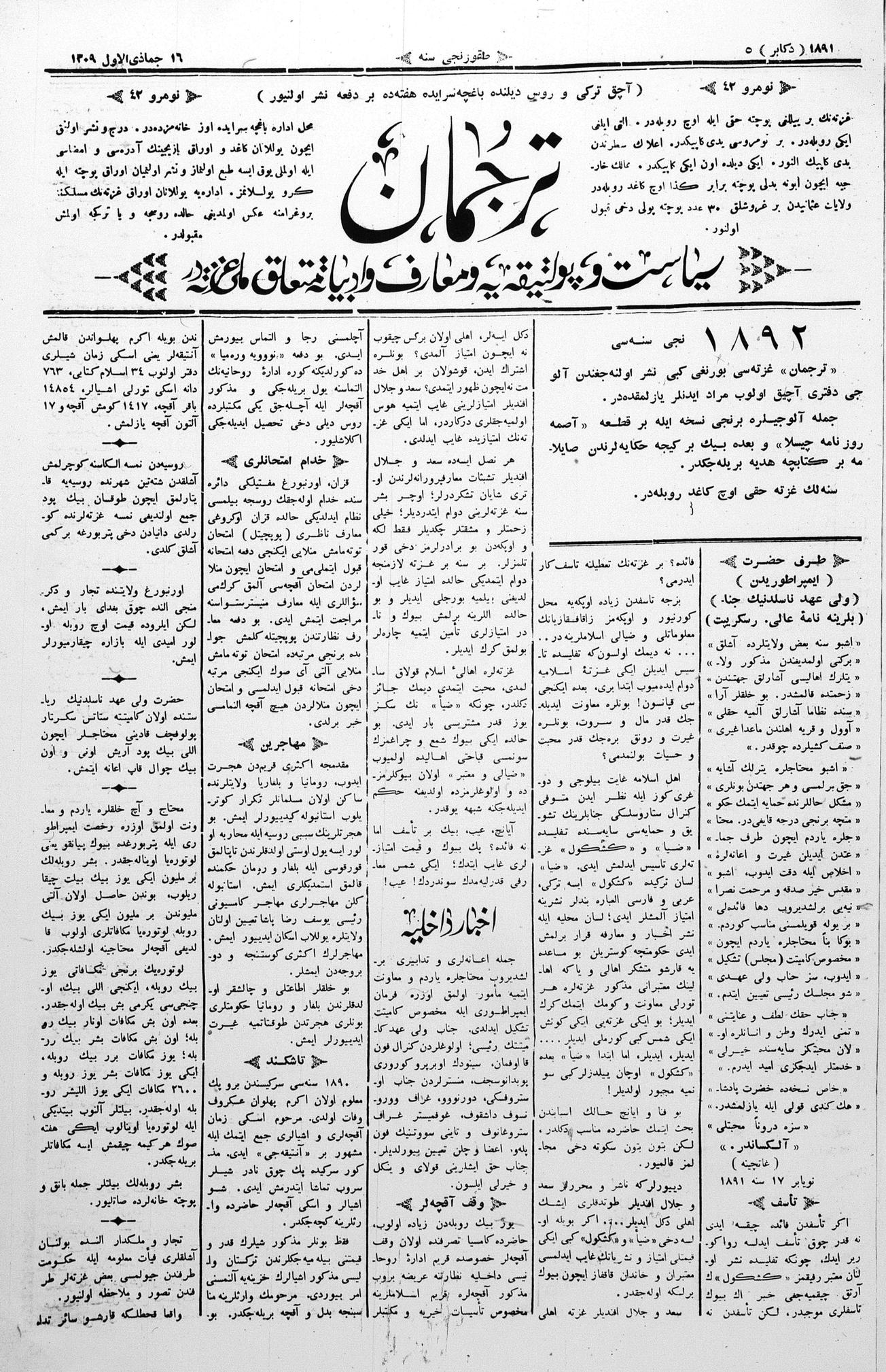 Tercüman, 05 December 1891 Year 9 No 42