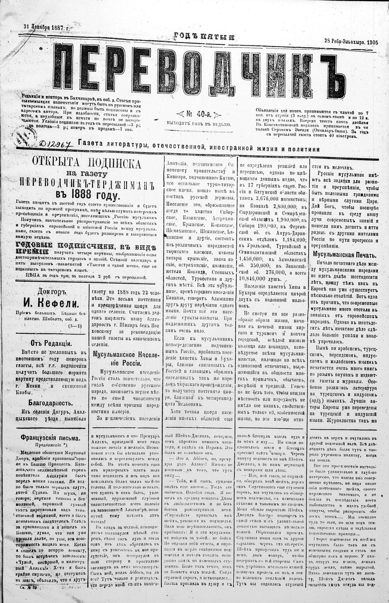 Tercüman, 31 December 1887 Year 5 No 40