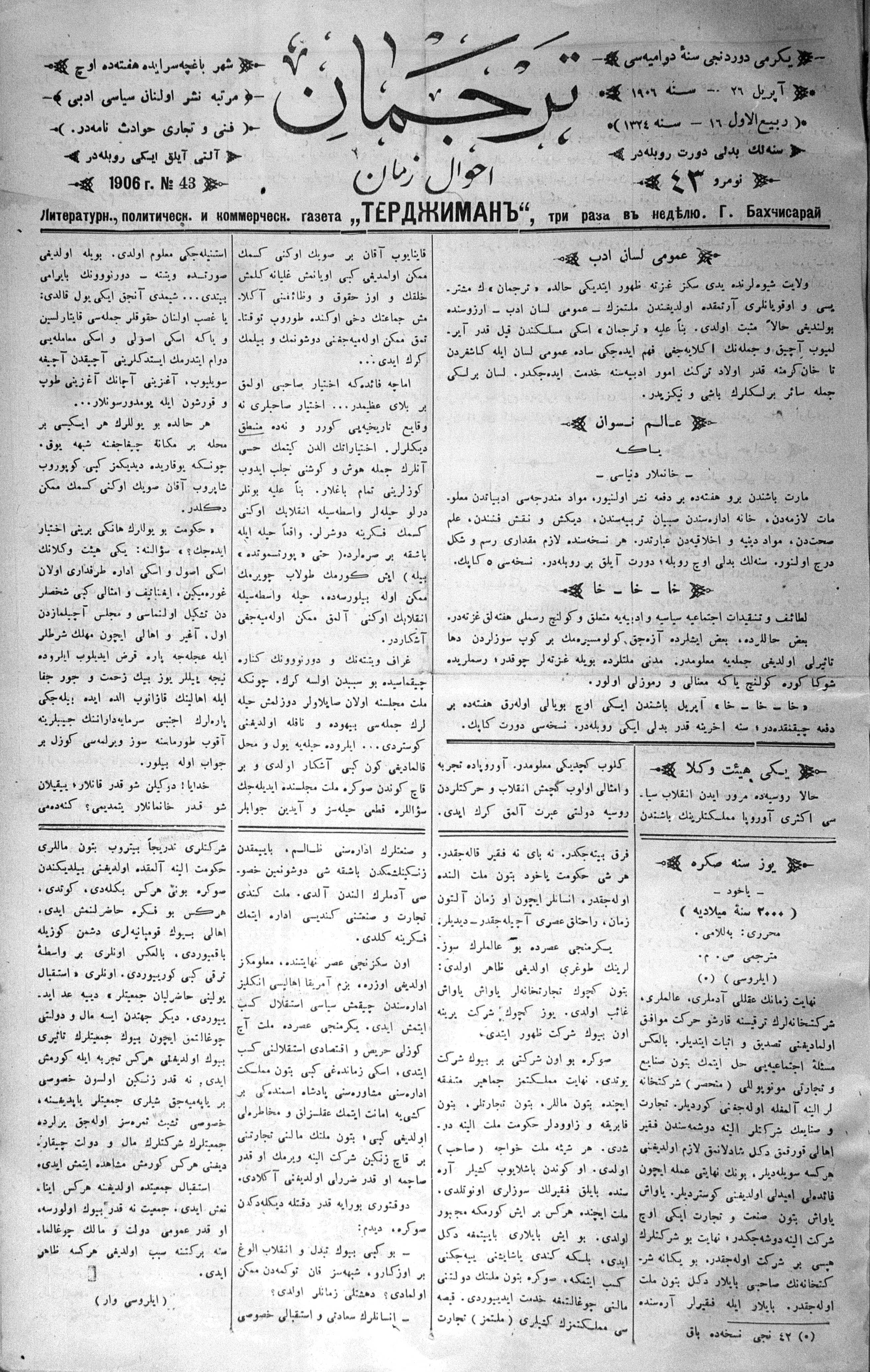 Tercüman, 26 April 1906 Year 24 No 43