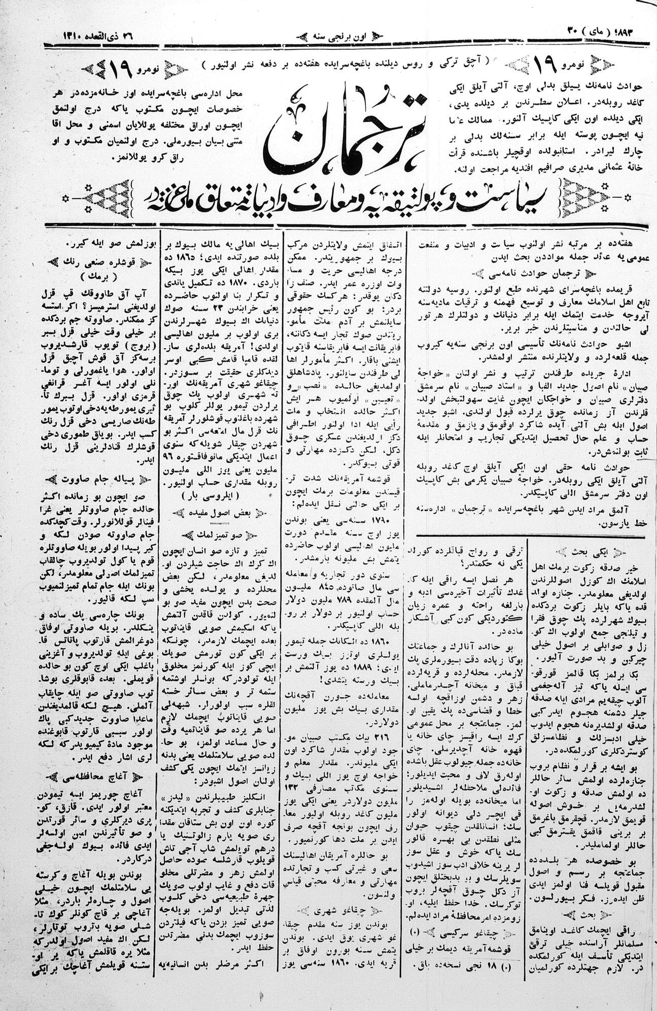 Tercüman, 30 May 1893 Year 11 No 19
