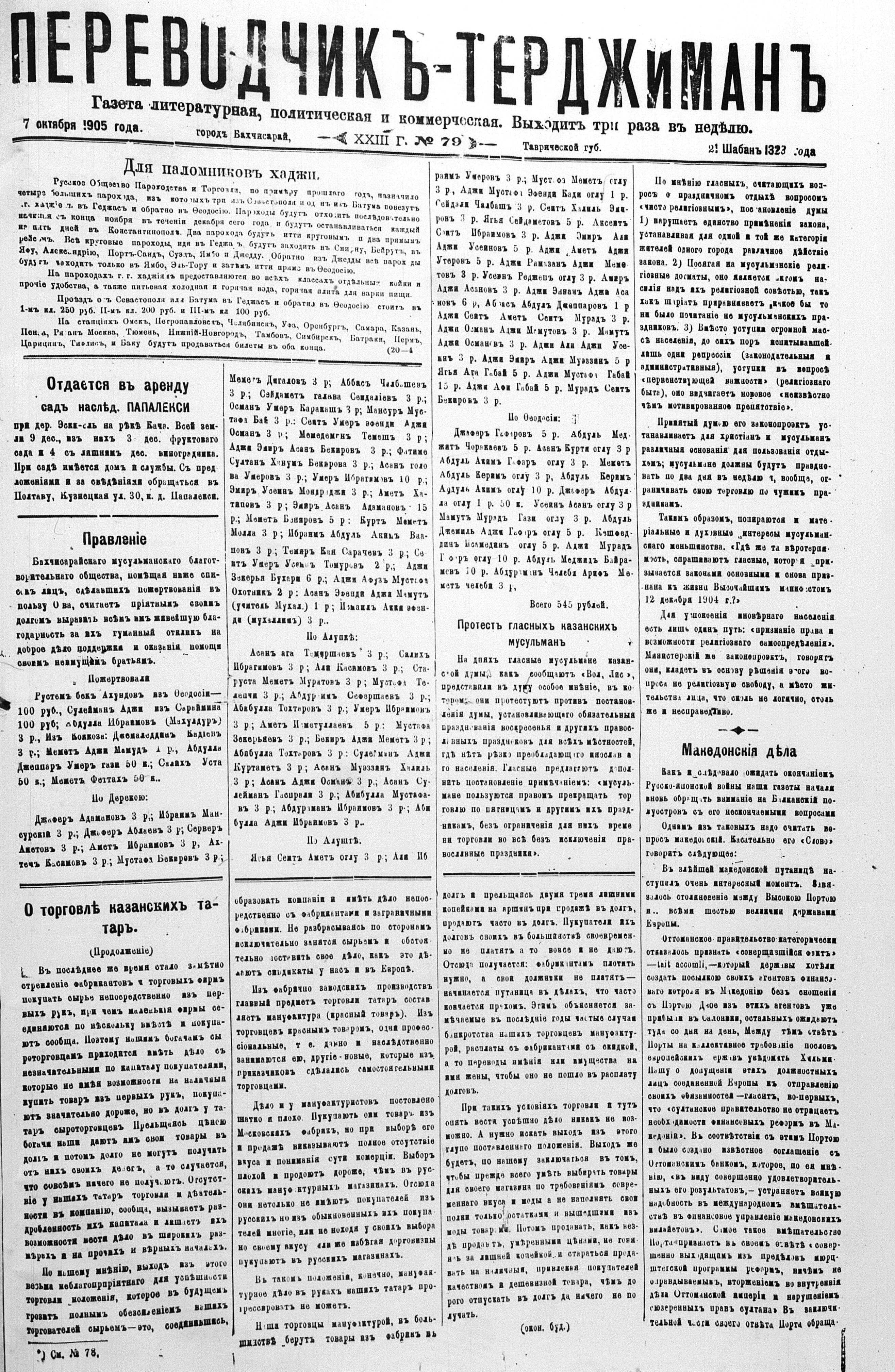 Tercüman, 07 October 1905 Year 23 No 79