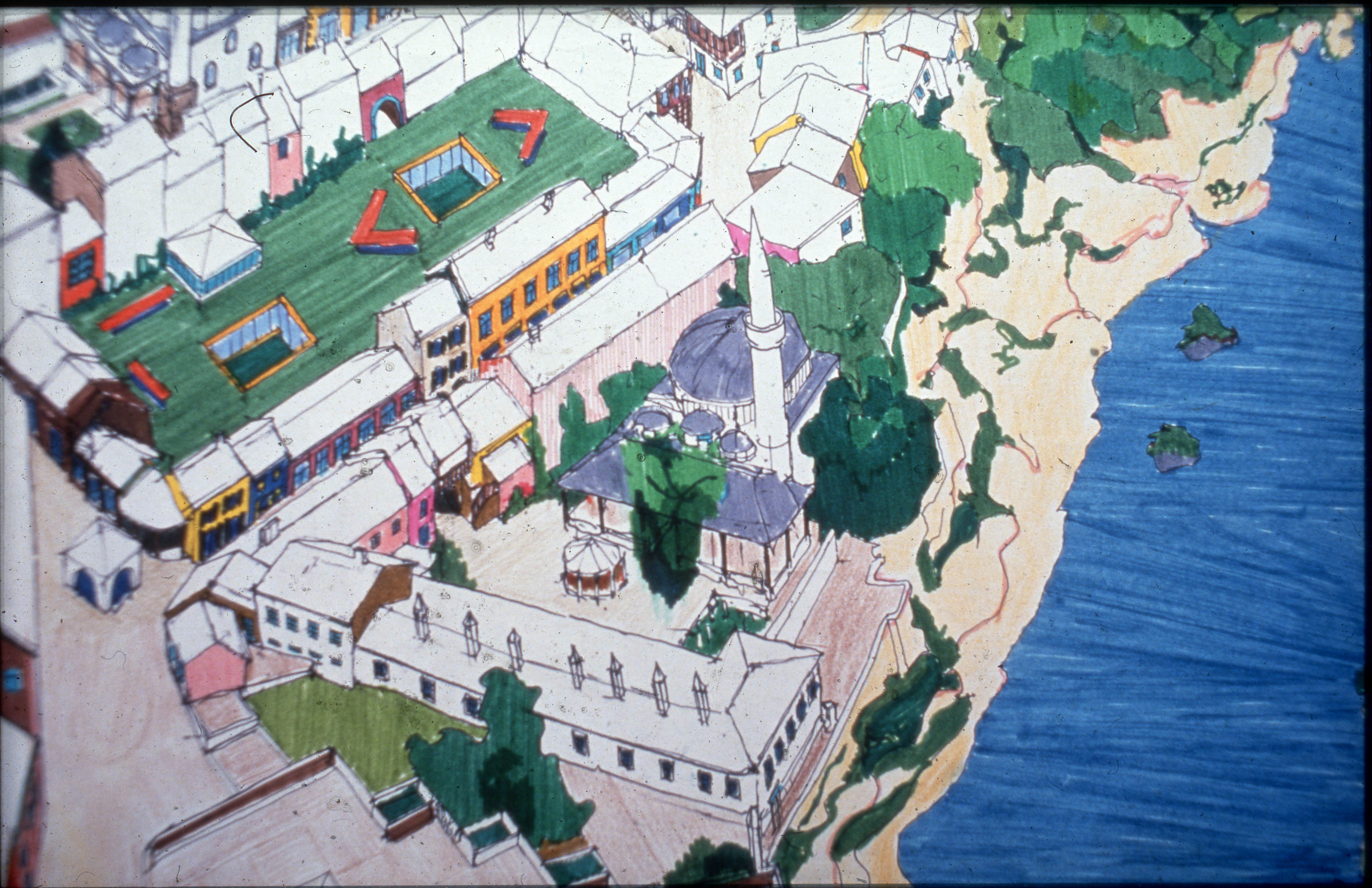 Axonometric drawing of the Koski Mehmed Pasha Mosque Complex by Amir Pašić