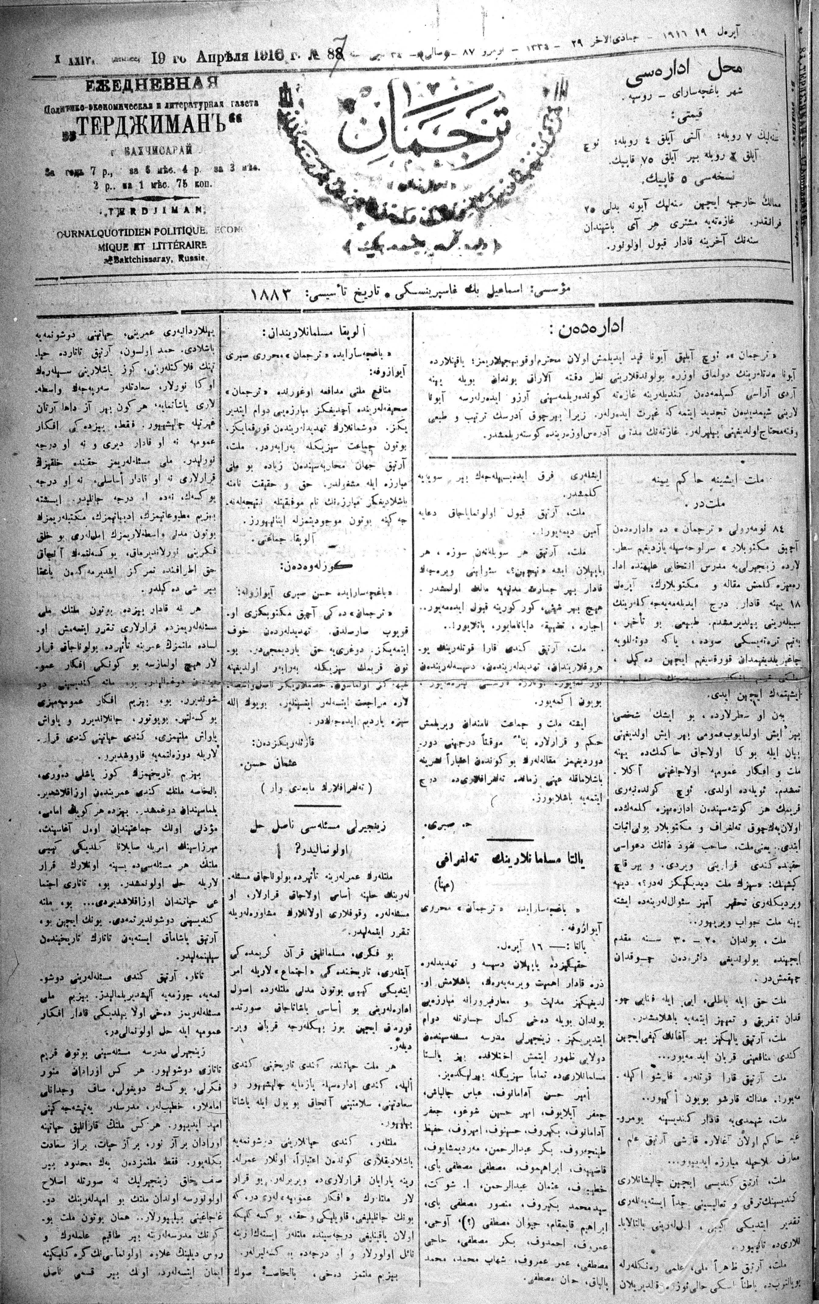 Turkish-Russian newspaper published in Crimea by İsmail Gaspıralı.