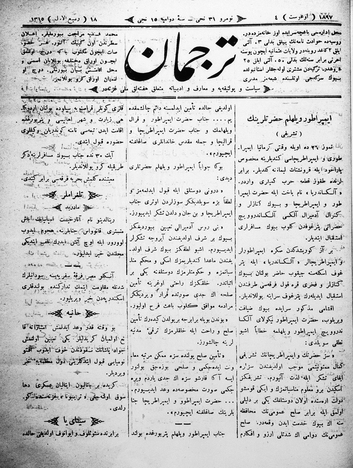The name of the newspaper changed to Tercüman-ı Ahval-i Zaman in 1905. In 1909, it started to be published under its first name, Tercüman.