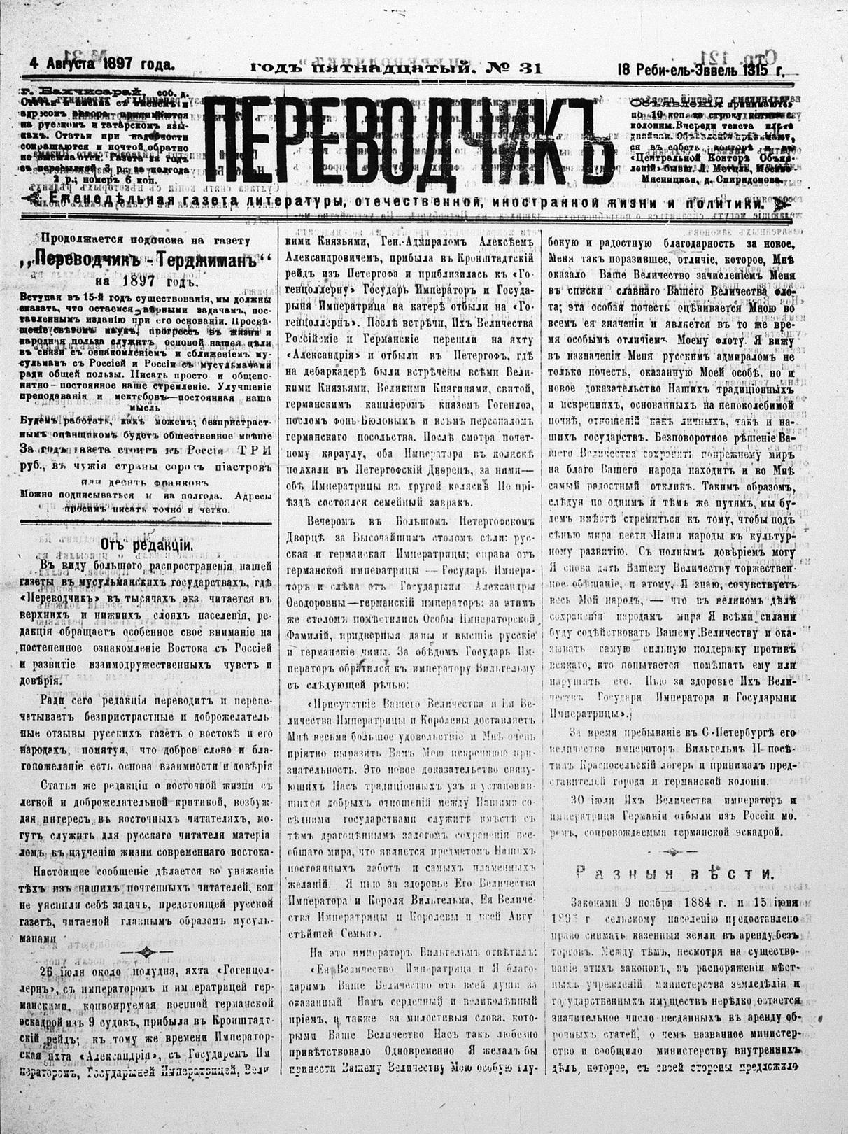 Turkish-Russian newspaper published in Crimea by İsmail Gaspıralı.