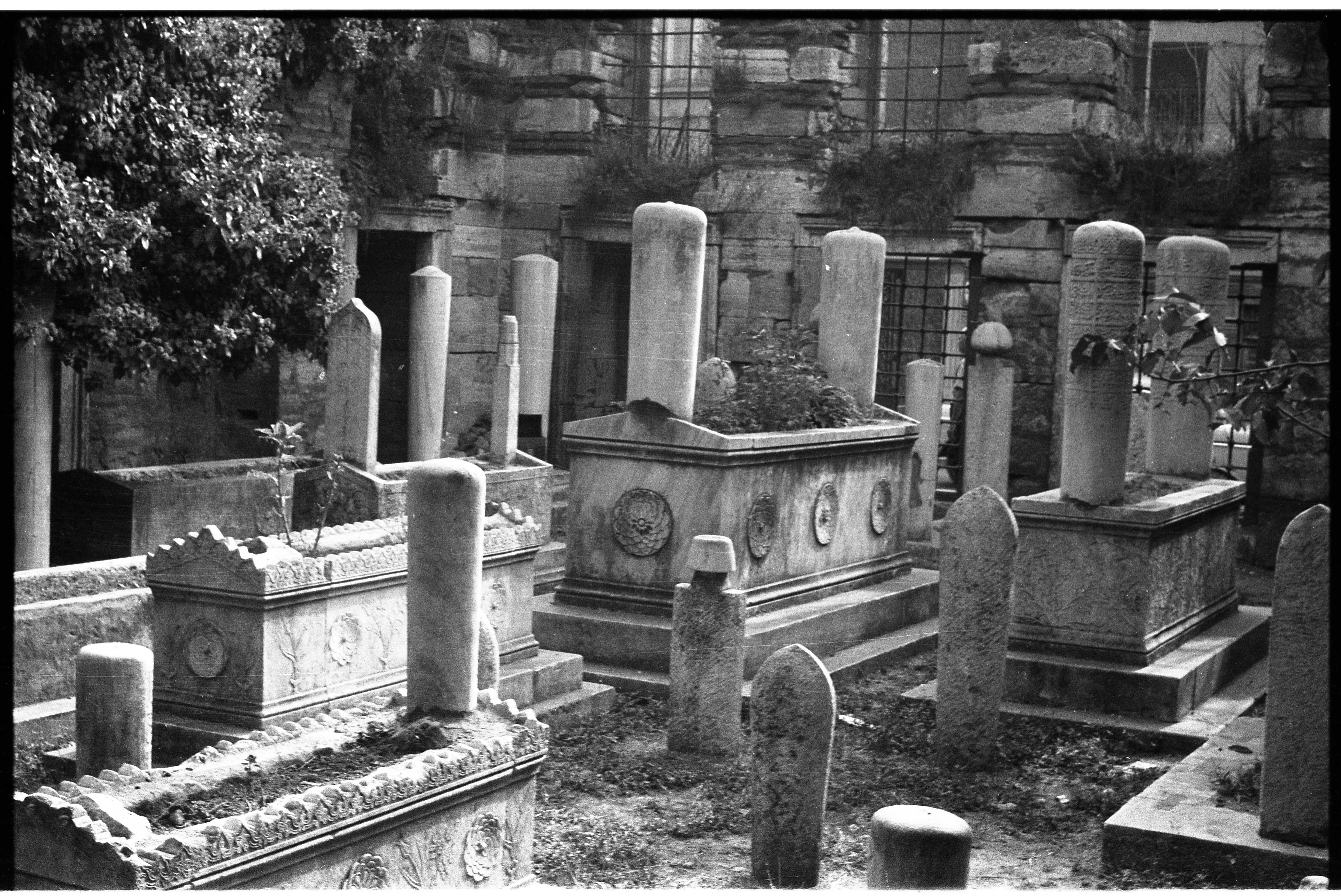 Eyüpsultan Zal Mahmud Paşa Medresesi ile Nakkaş Hasan Paşa Türbesi arasındaki kapalı mezarlık ve süslü mezar taşları