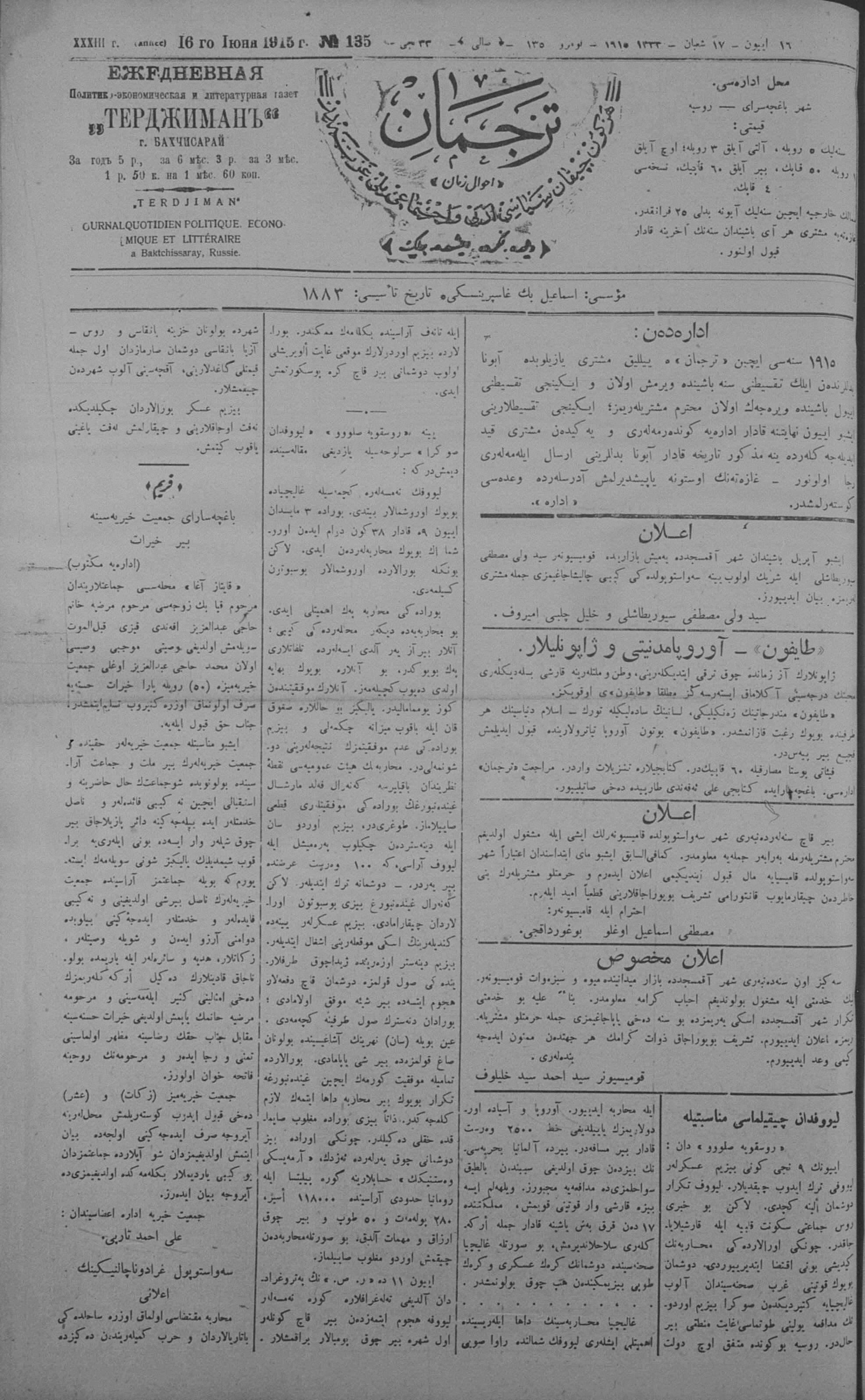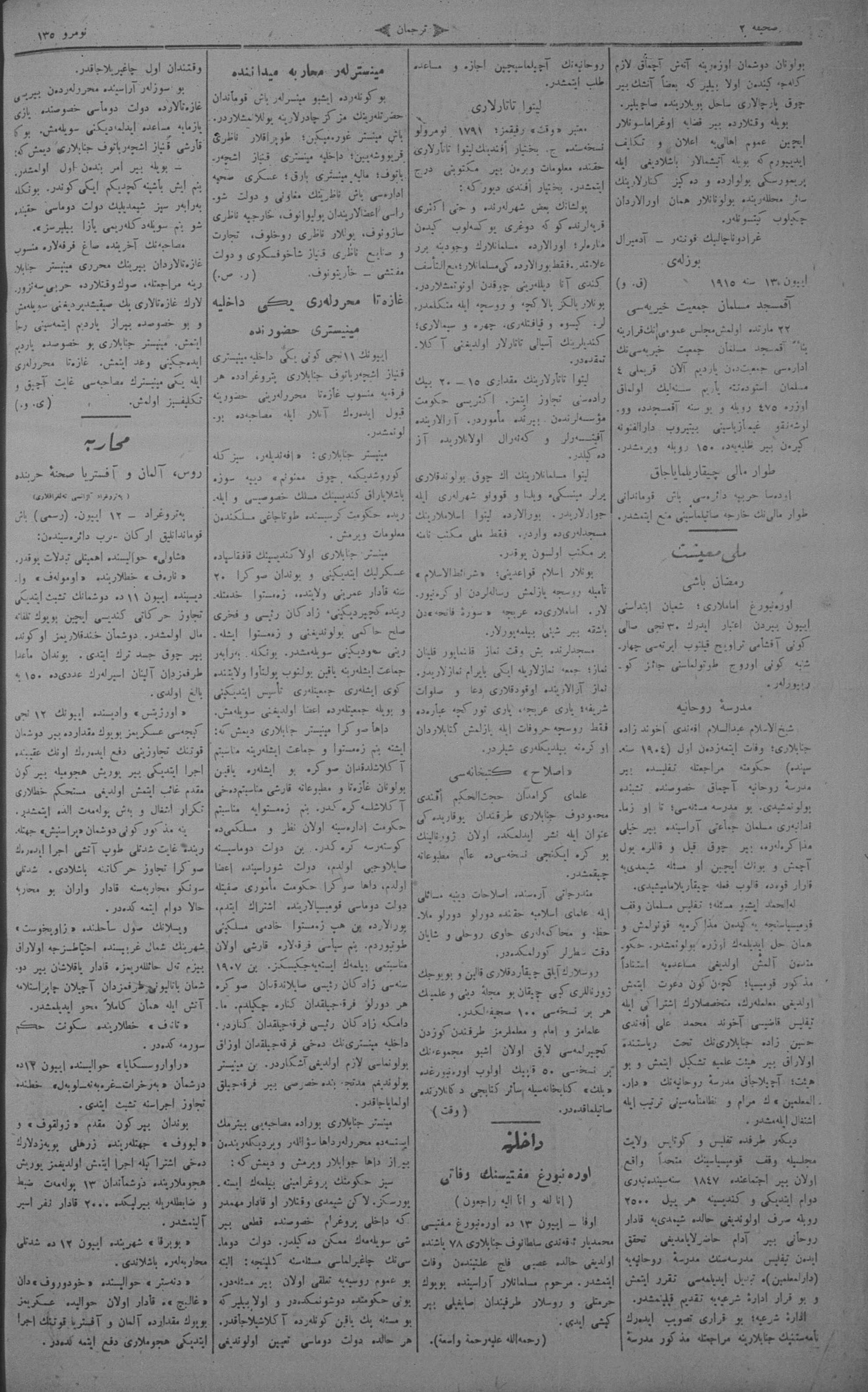 Tercüman, 16 June 1915 Year 33 No 135