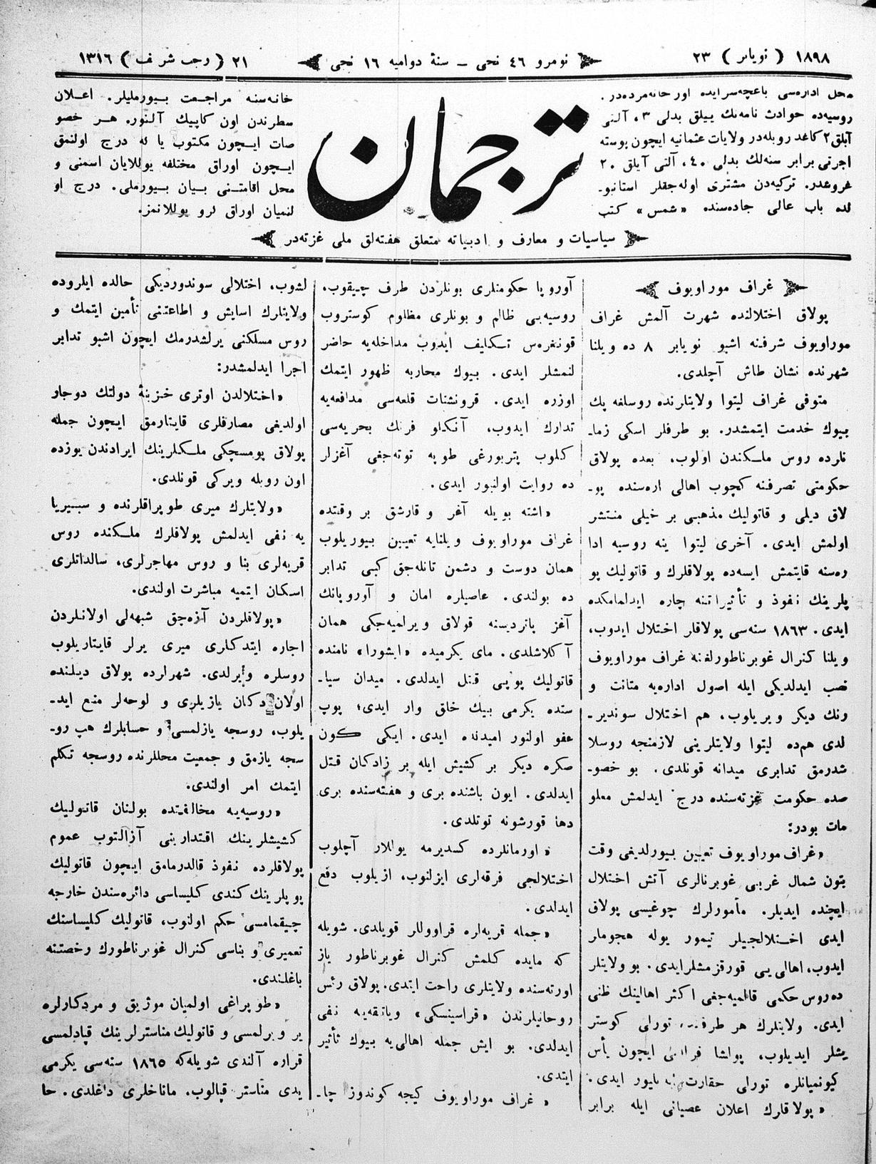 Tercüman, 22 November 1898 Year 16 No 46