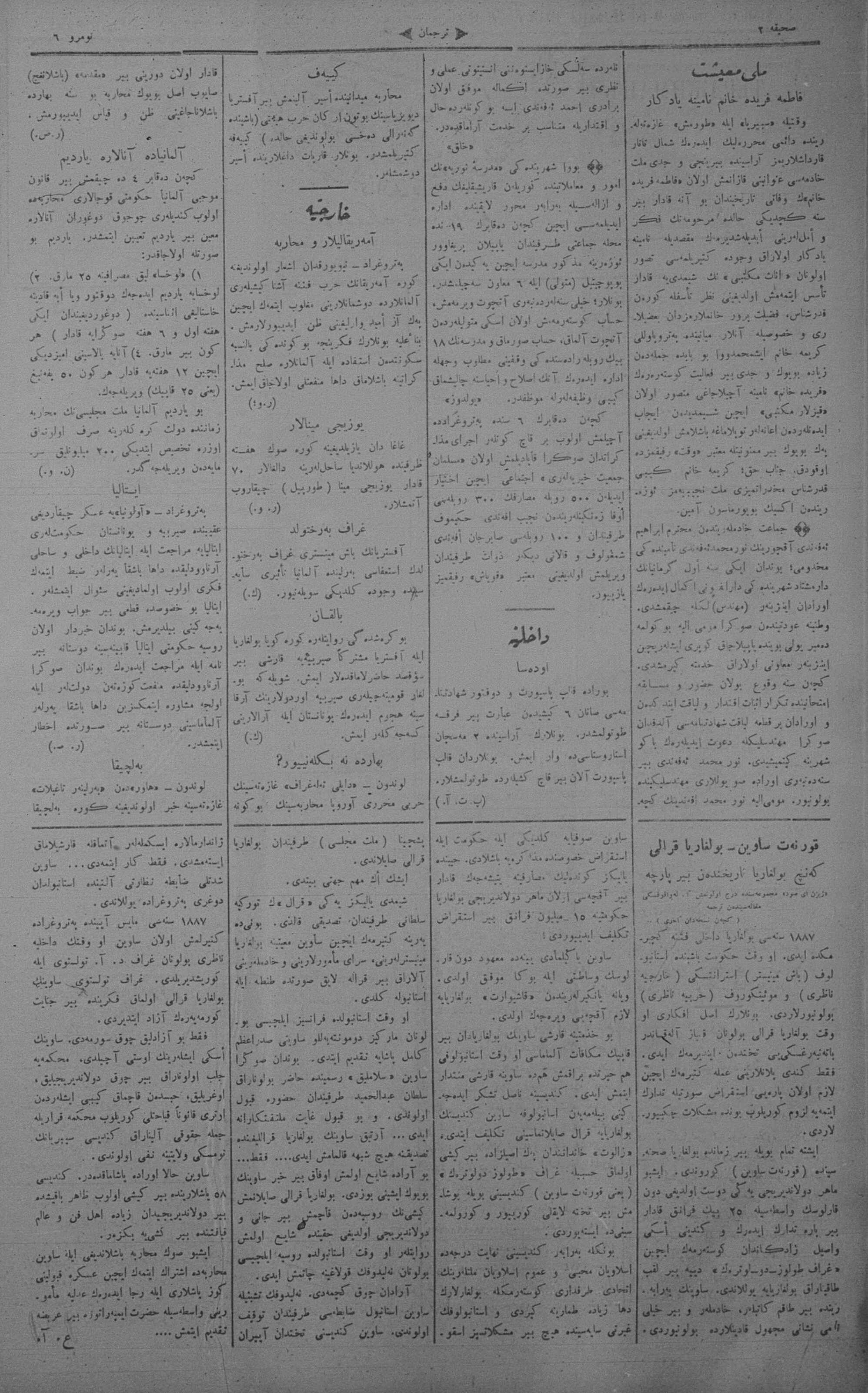 The name of the newspaper changed to Tercüman-ı Ahval-i Zaman in 1905. In 1909, it started to be published under its first name, Tercüman.