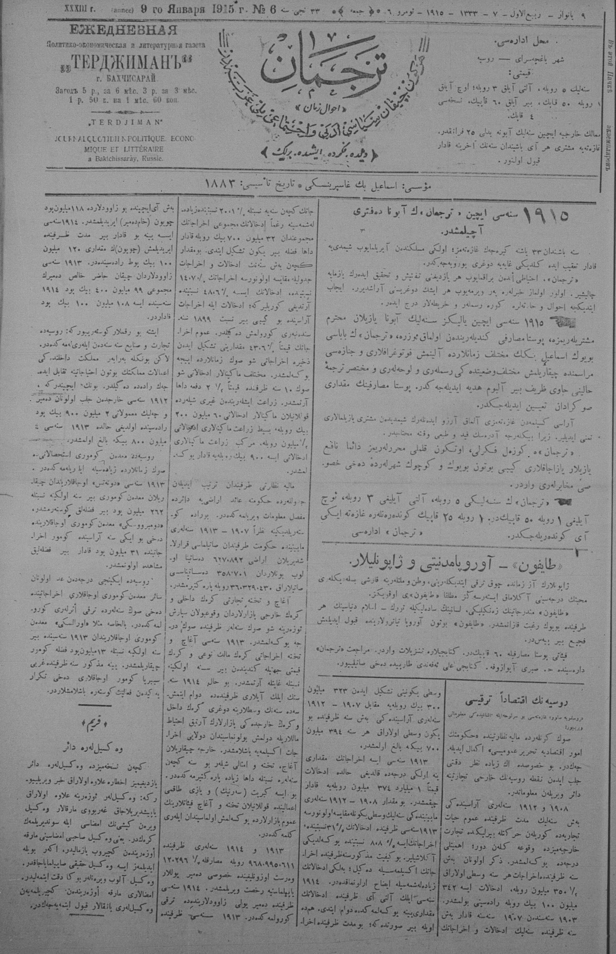 Tercüman, 09 January 1915 Year 33 No 6