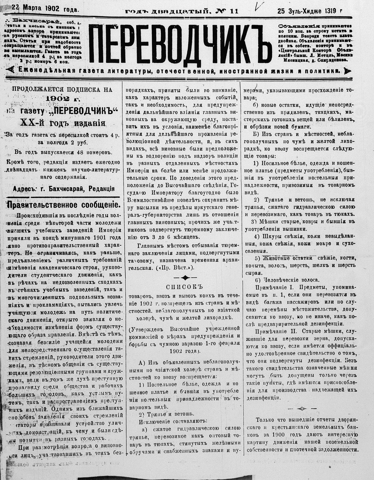 Turkish-Russian newspaper published in Crimea by İsmail Gaspıralı.