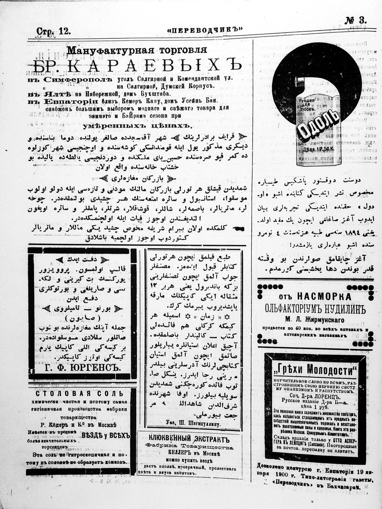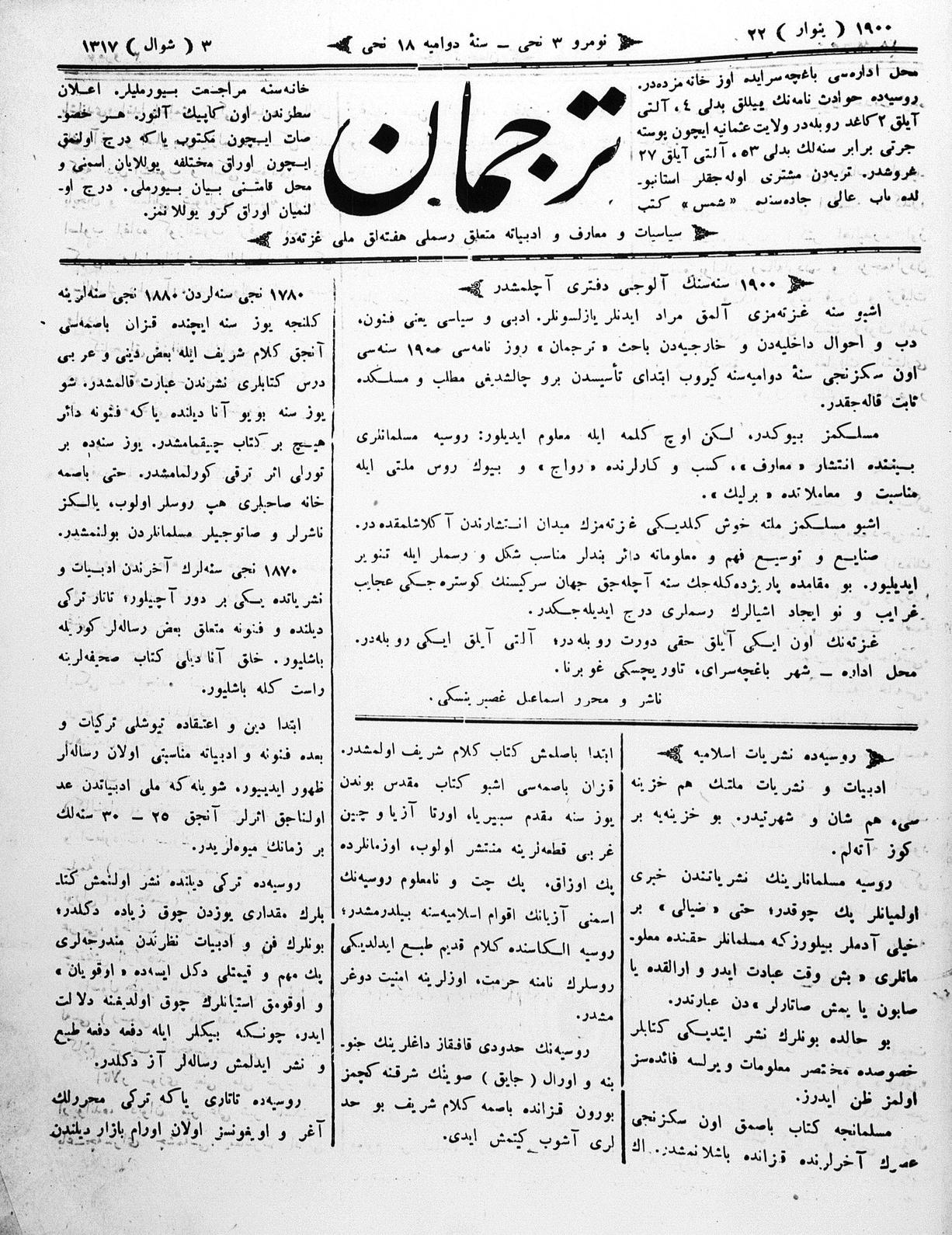 Tercüman, 22 January 1900 Year 18 No 3