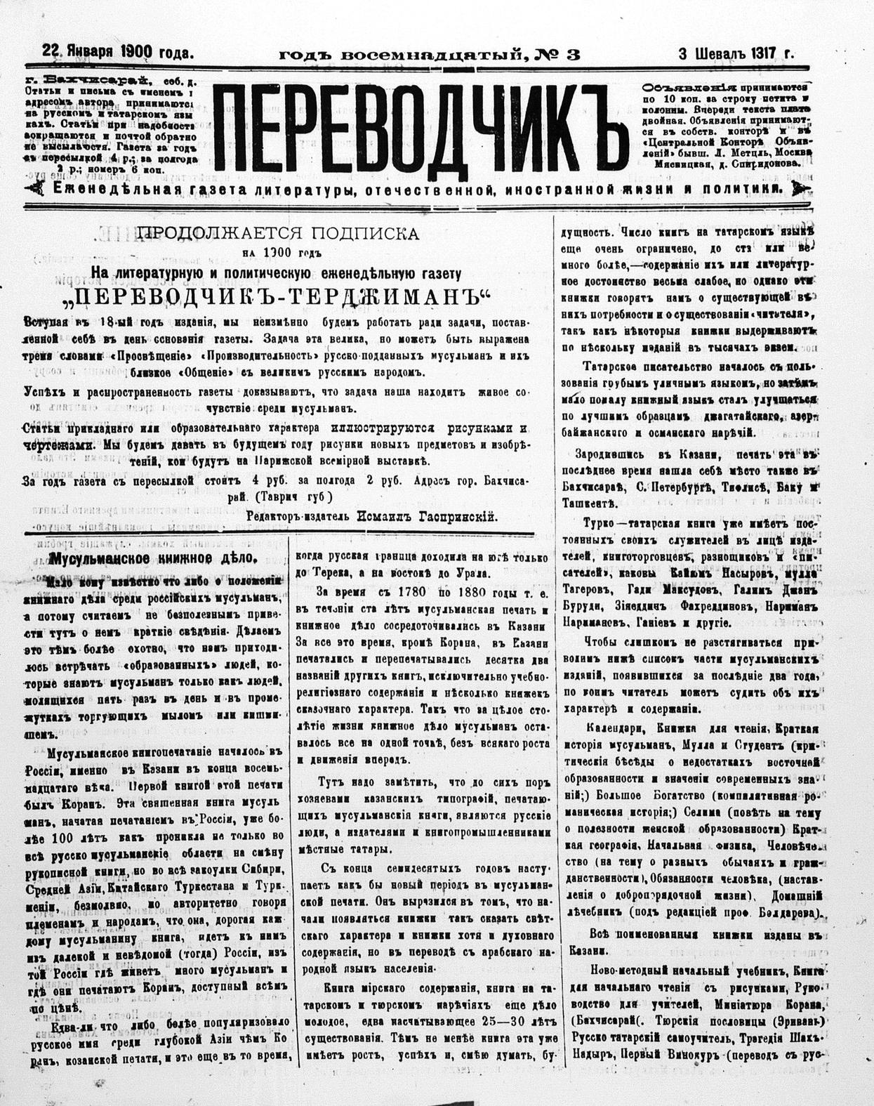 Turkish-Russian newspaper published in Crimea by İsmail Gaspıralı.