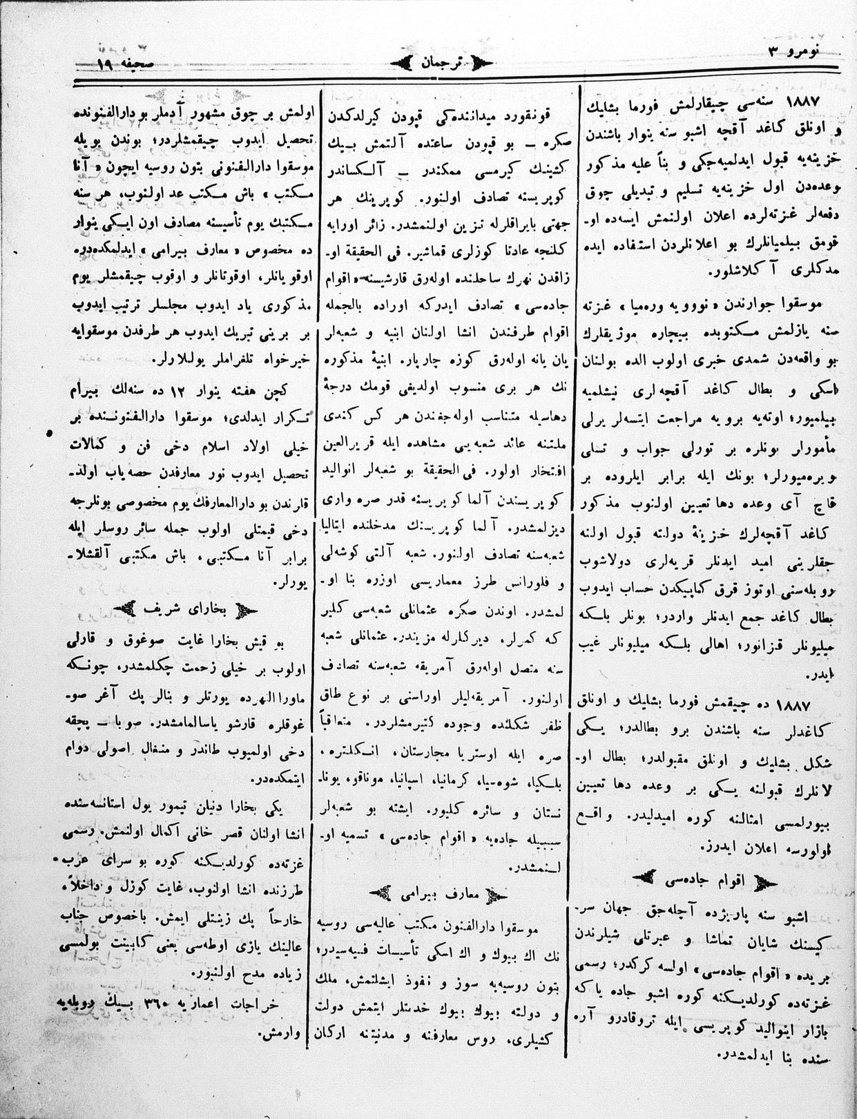 The name of the newspaper changed to Tercüman-ı Ahval-i Zaman in 1905. In 1909, it started to be published under its first name, Tercüman.