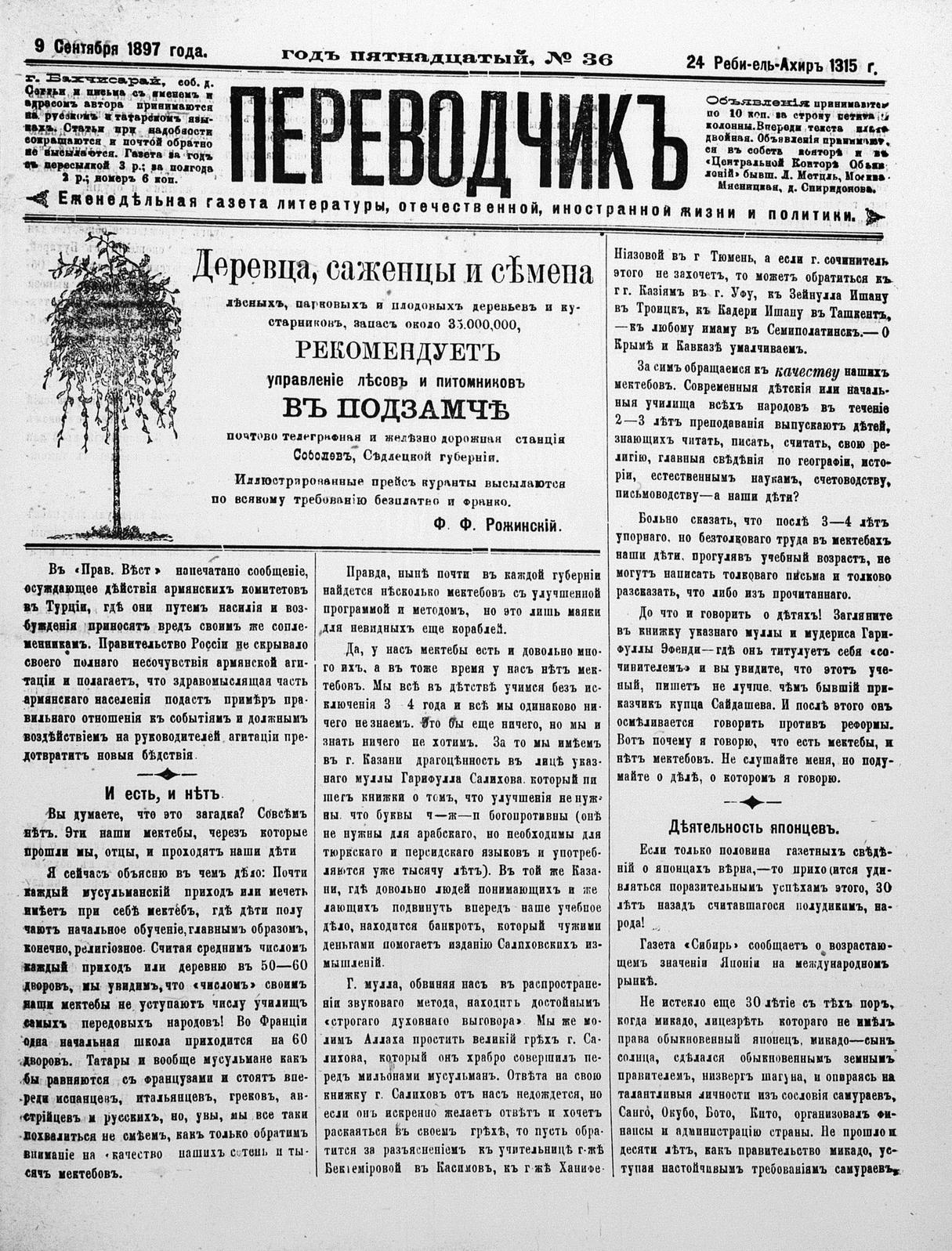 Turkish-Russian newspaper published in Crimea by İsmail Gaspıralı.