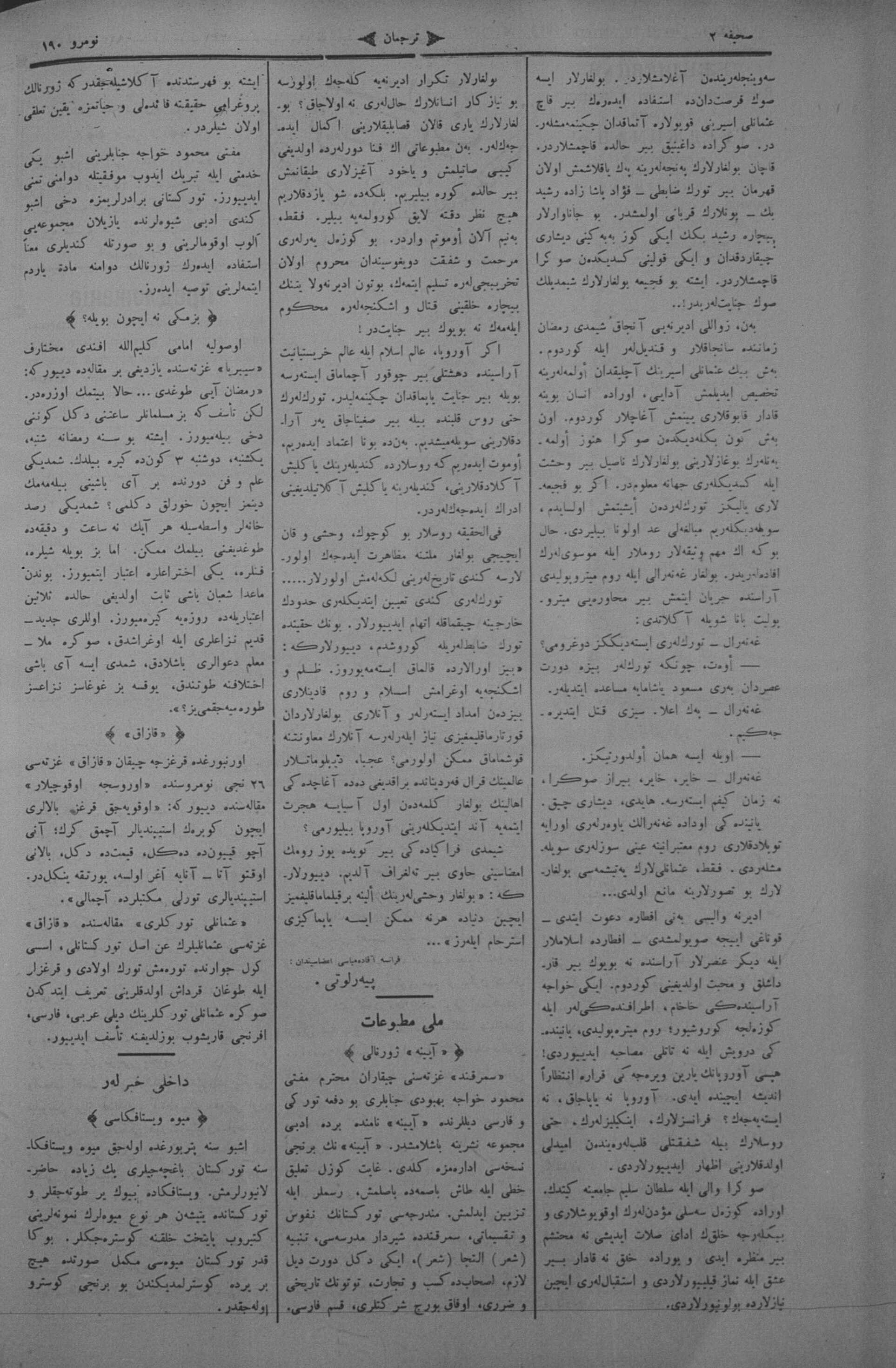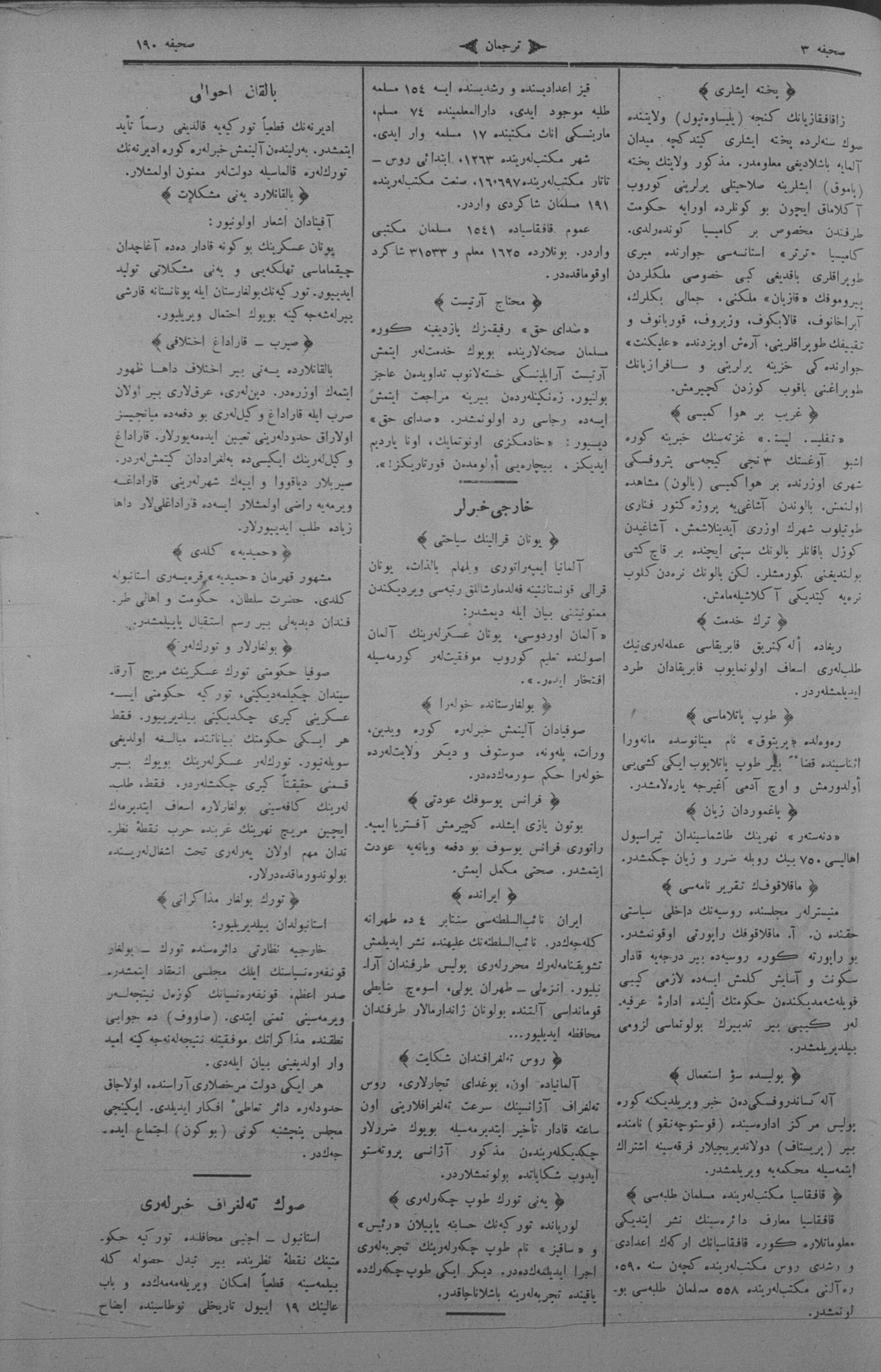 The name of the newspaper changed to Tercüman-ı Ahval-i Zaman in 1905. In 1909, it started to be published under its first name, Tercüman.