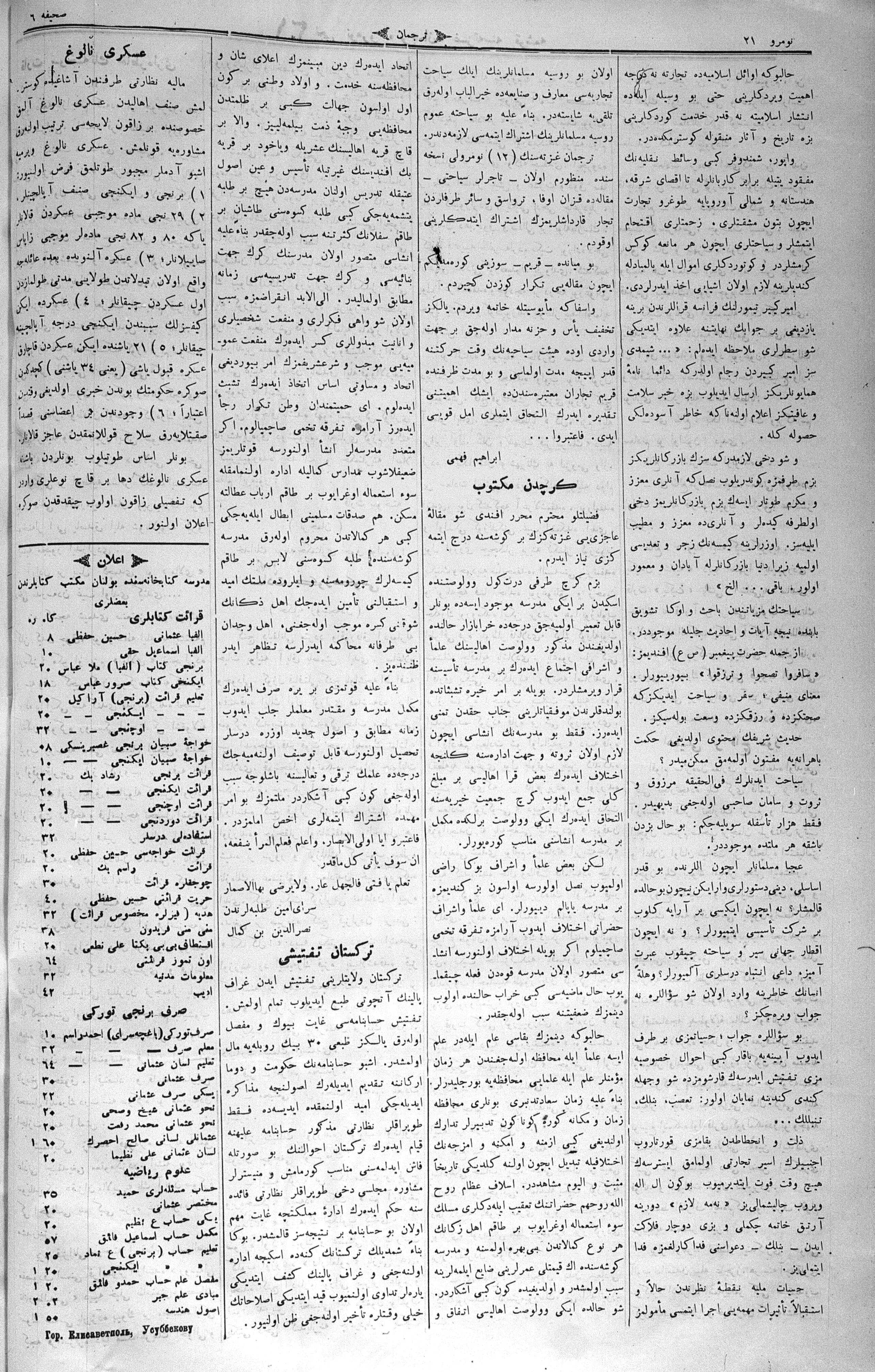 Turkish-Russian newspaper published in Crimea by İsmail Gaspıralı.