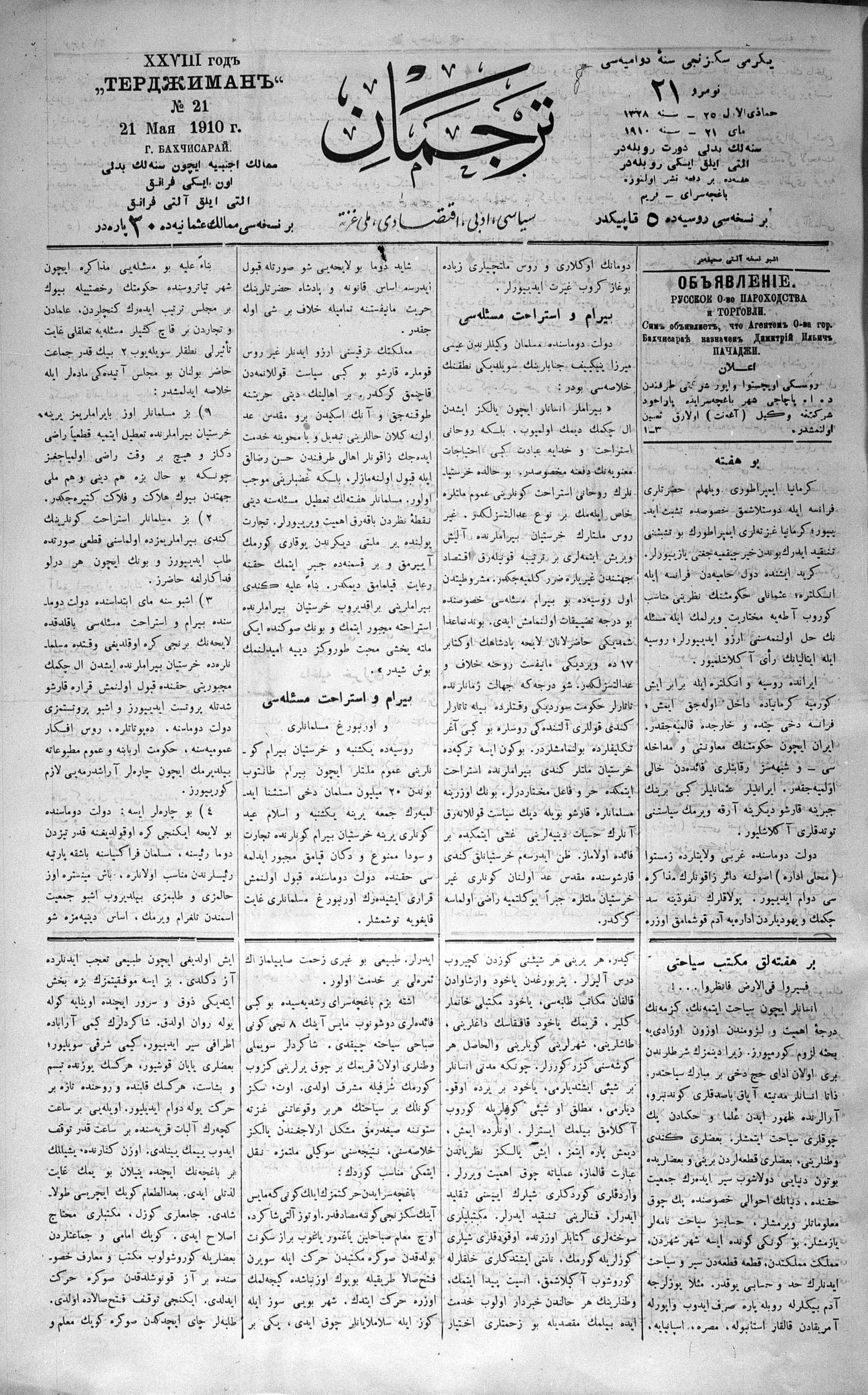 Tercüman, 21 May 1910 Year 28 No 21