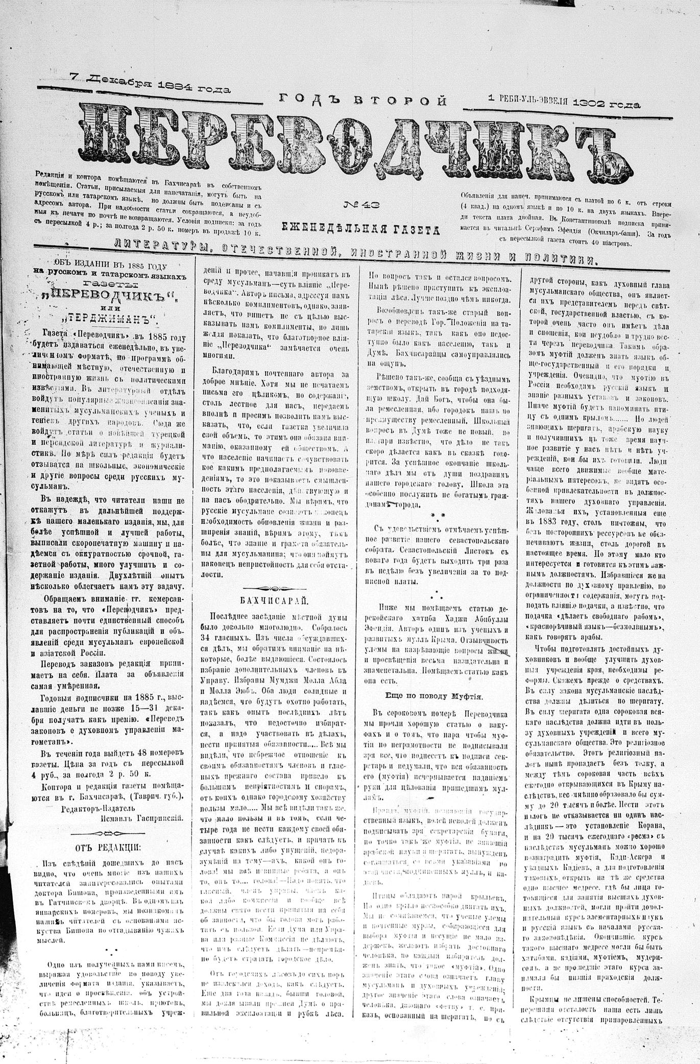 Turkish-Russian newspaper published in Crimea by İsmail Gaspıralı.