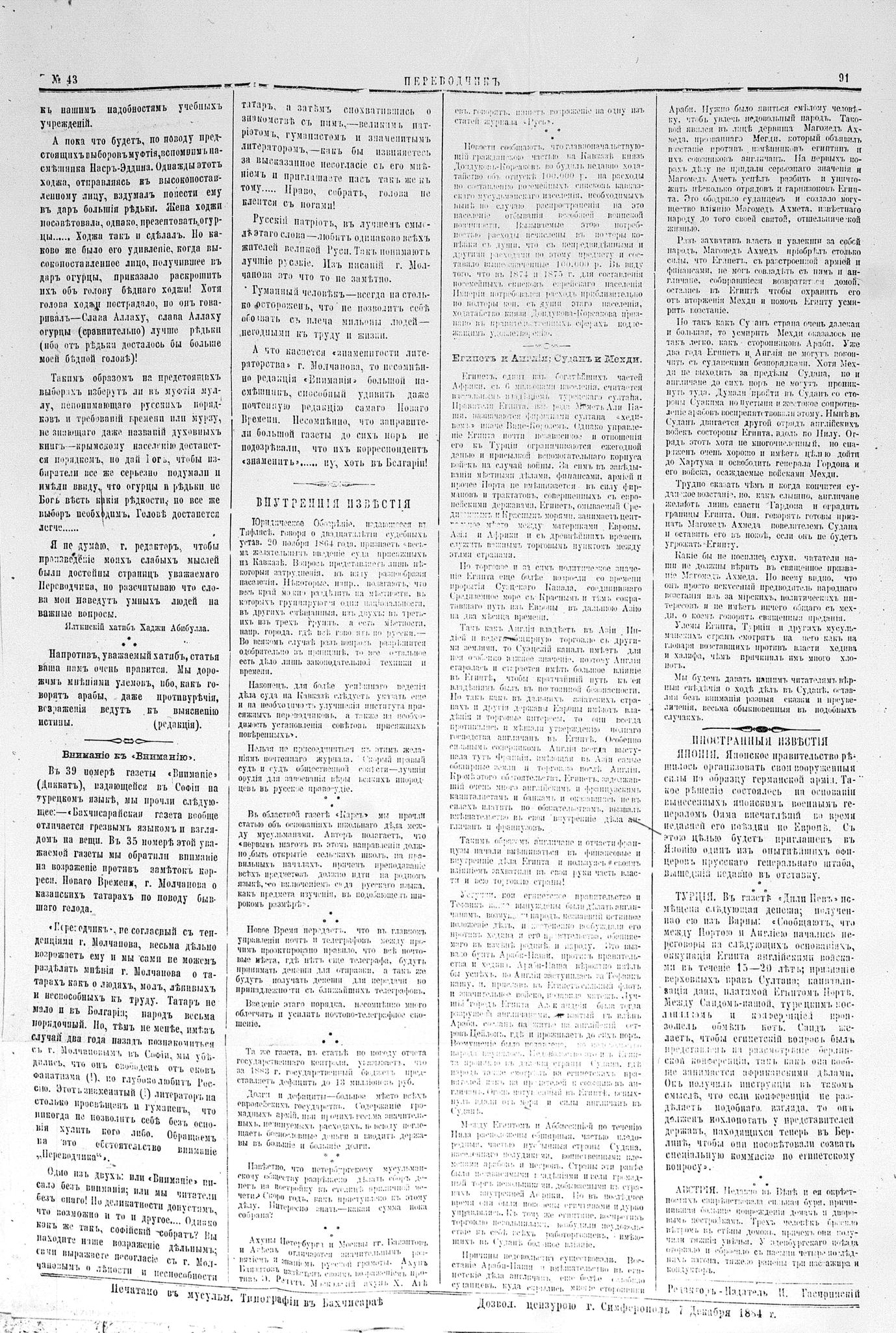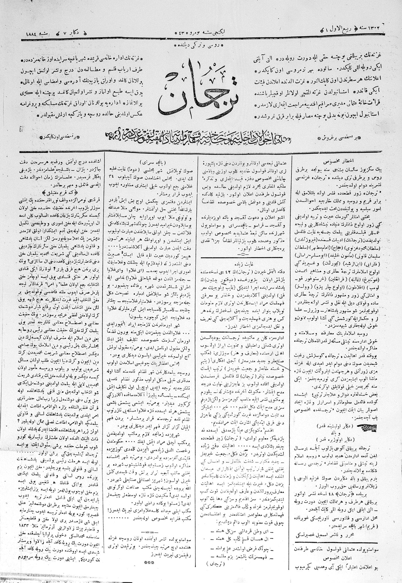 Tercüman, 07 December 1884 Year 2 No 43