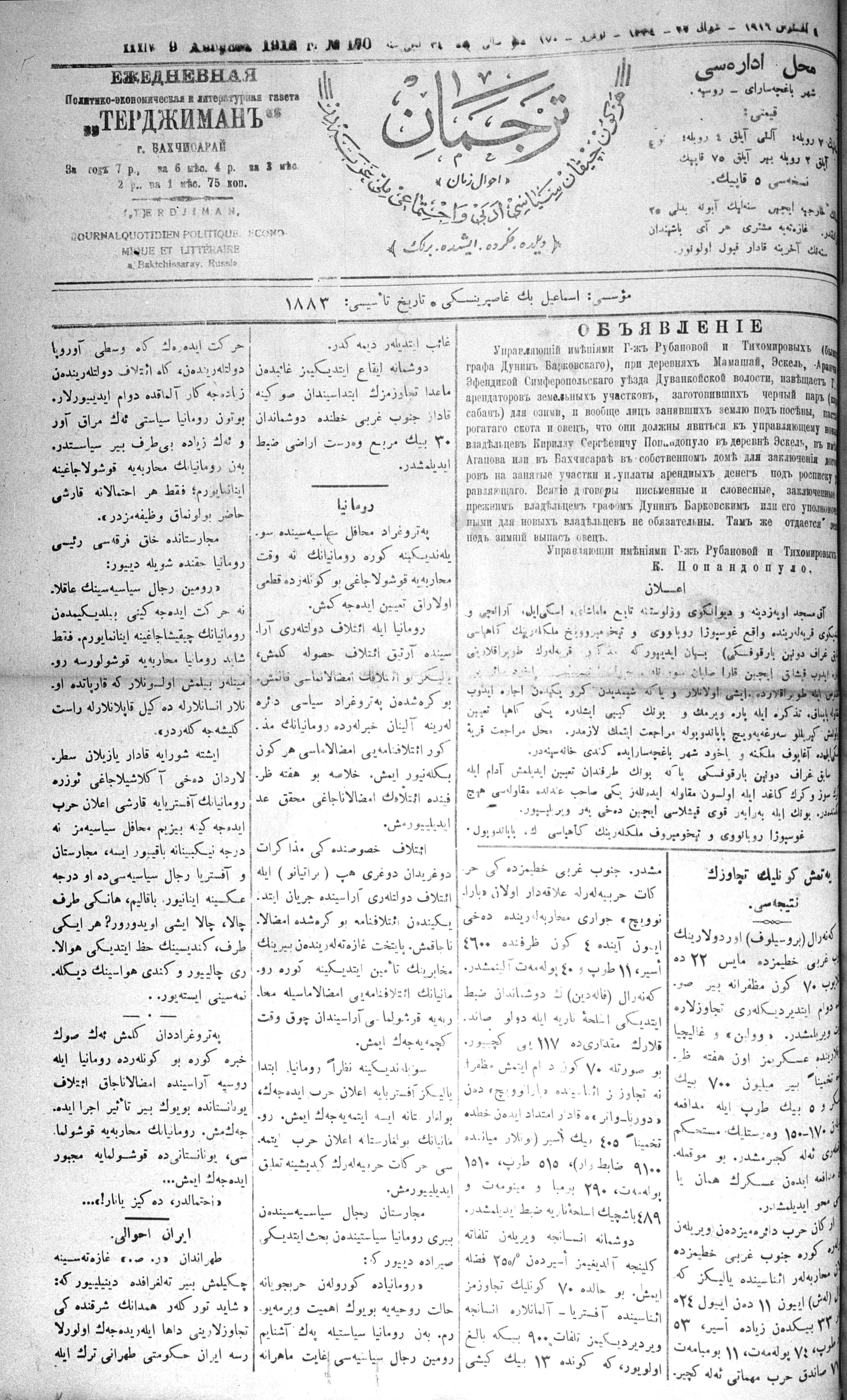 Turkish-Russian newspaper published in Crimea by İsmail Gaspıralı.