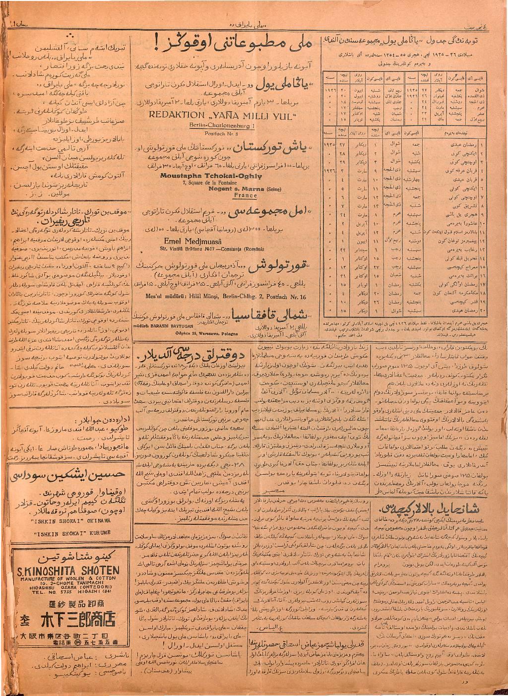 The Milli Bayrak newspaper was written in Tatar with Arabic script.