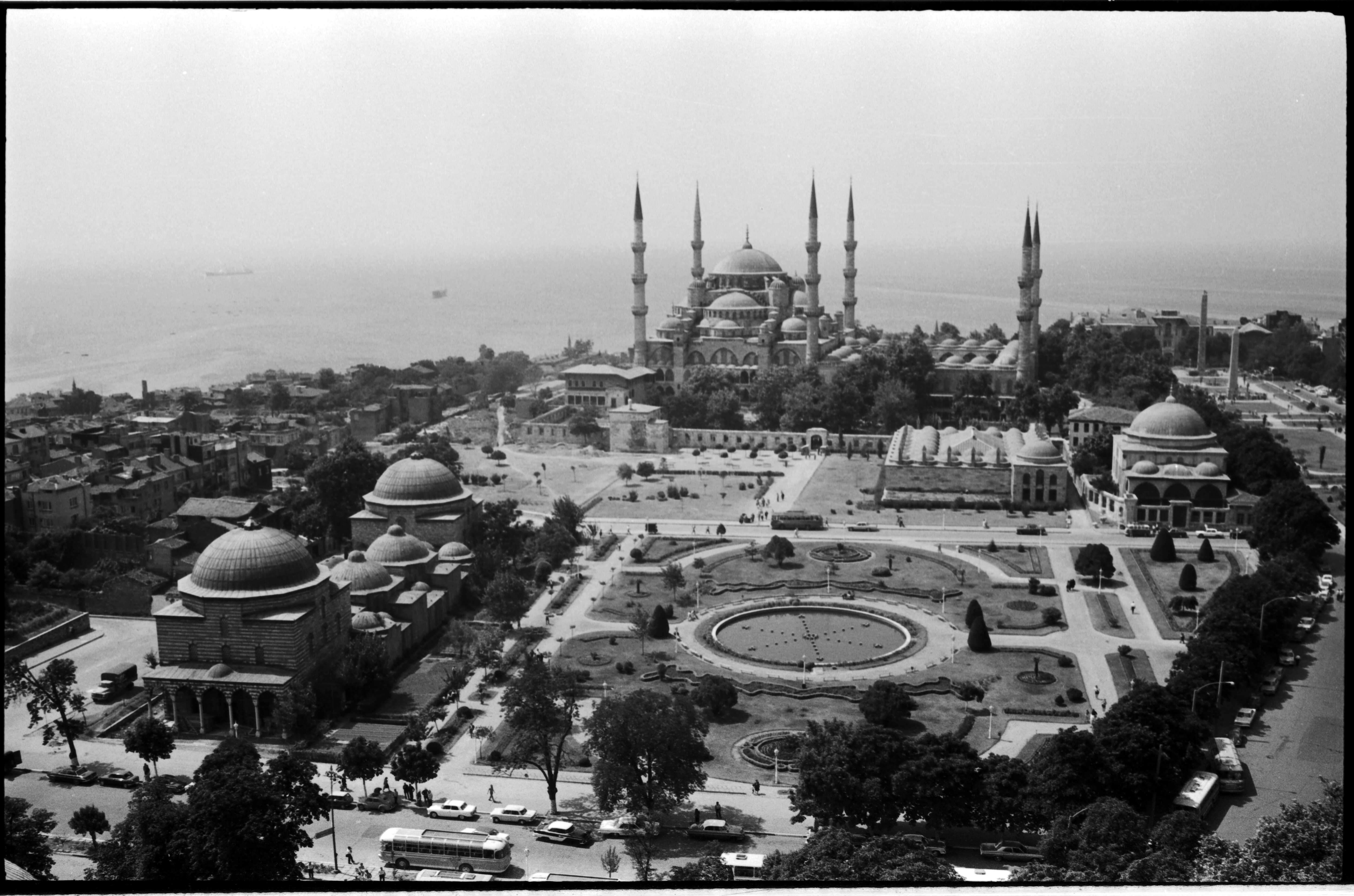 Ayasofya Camii'nin Mimar Sinan tarafından inşa edilen minaresinden Sultan Ahmet Camii'nin görünüşü