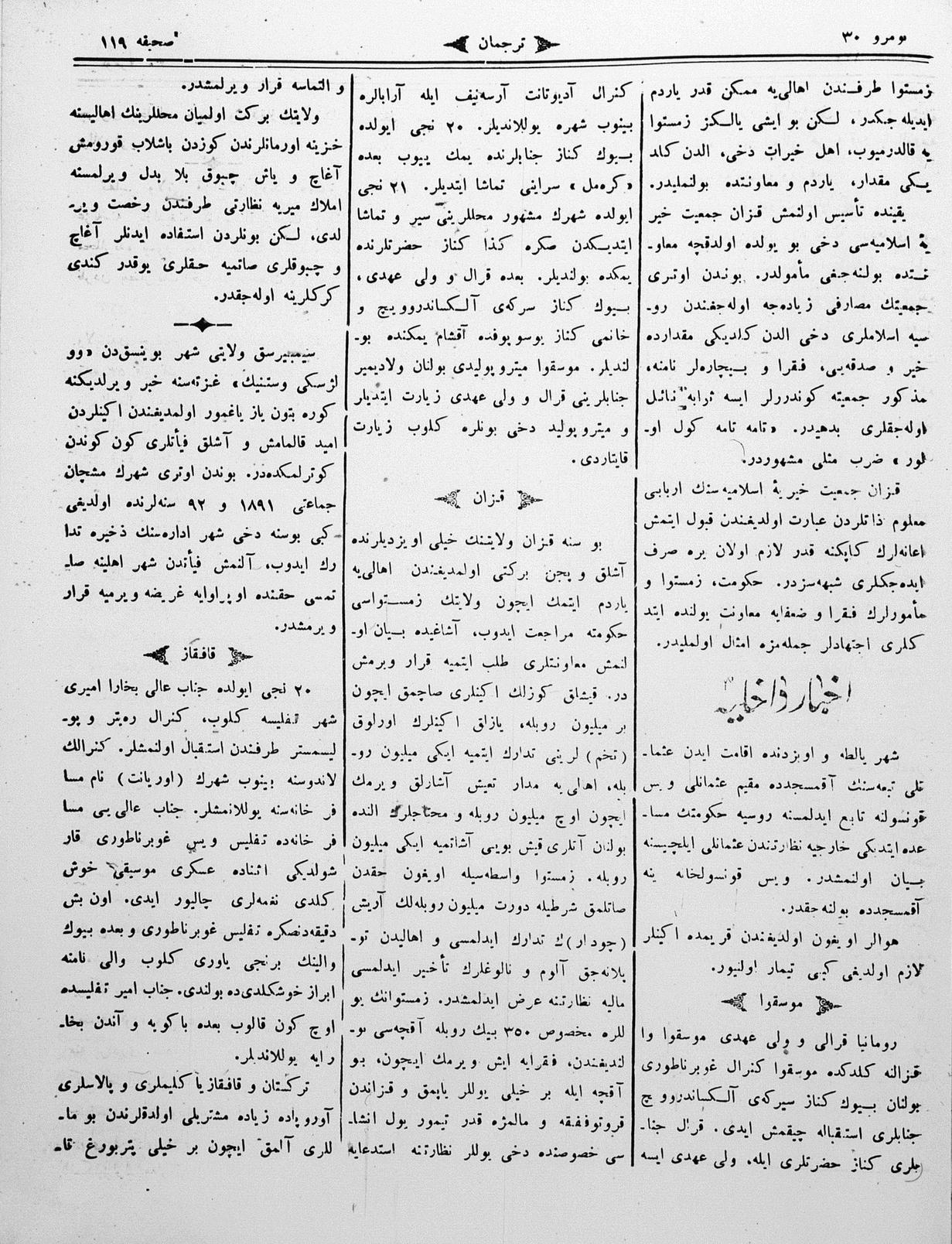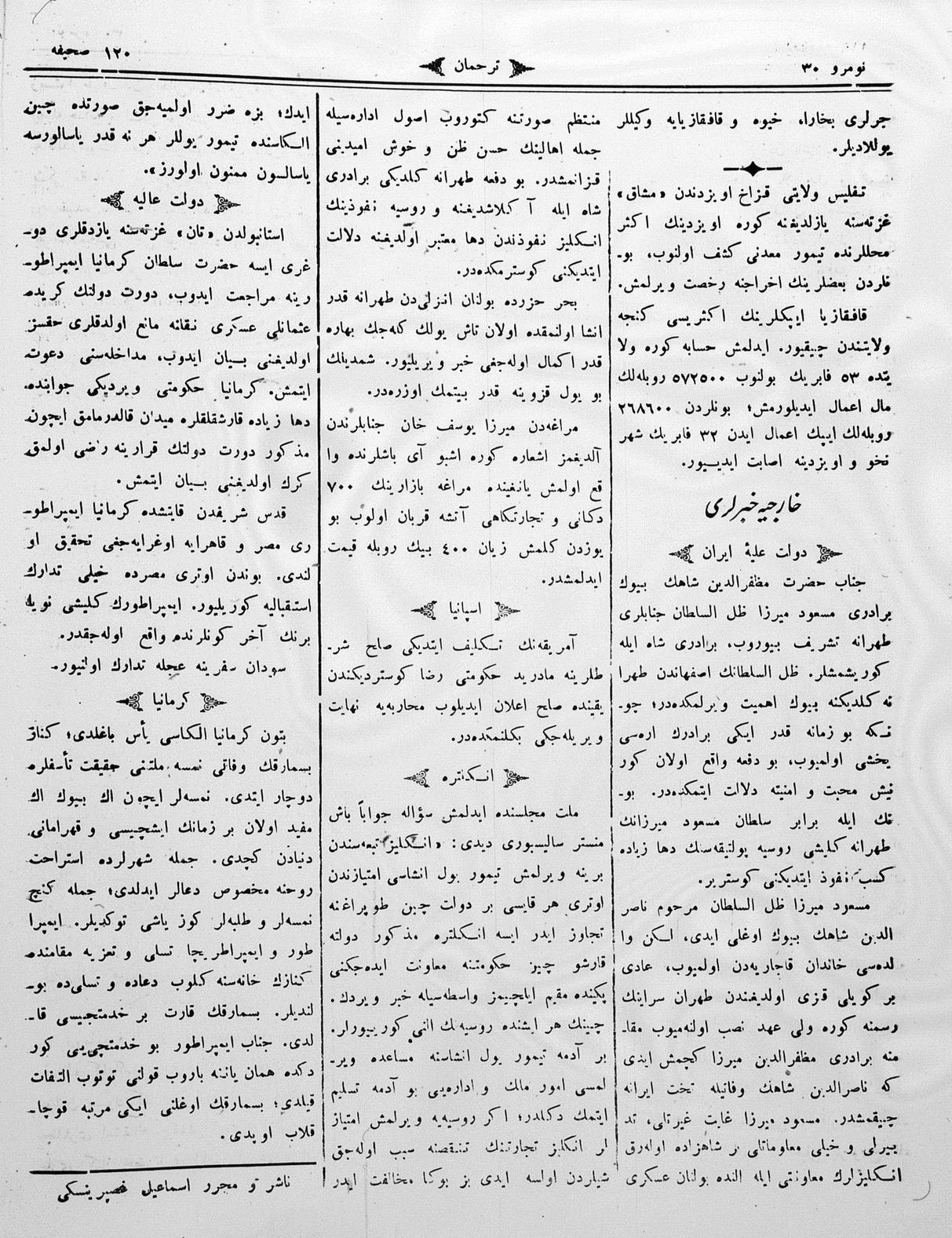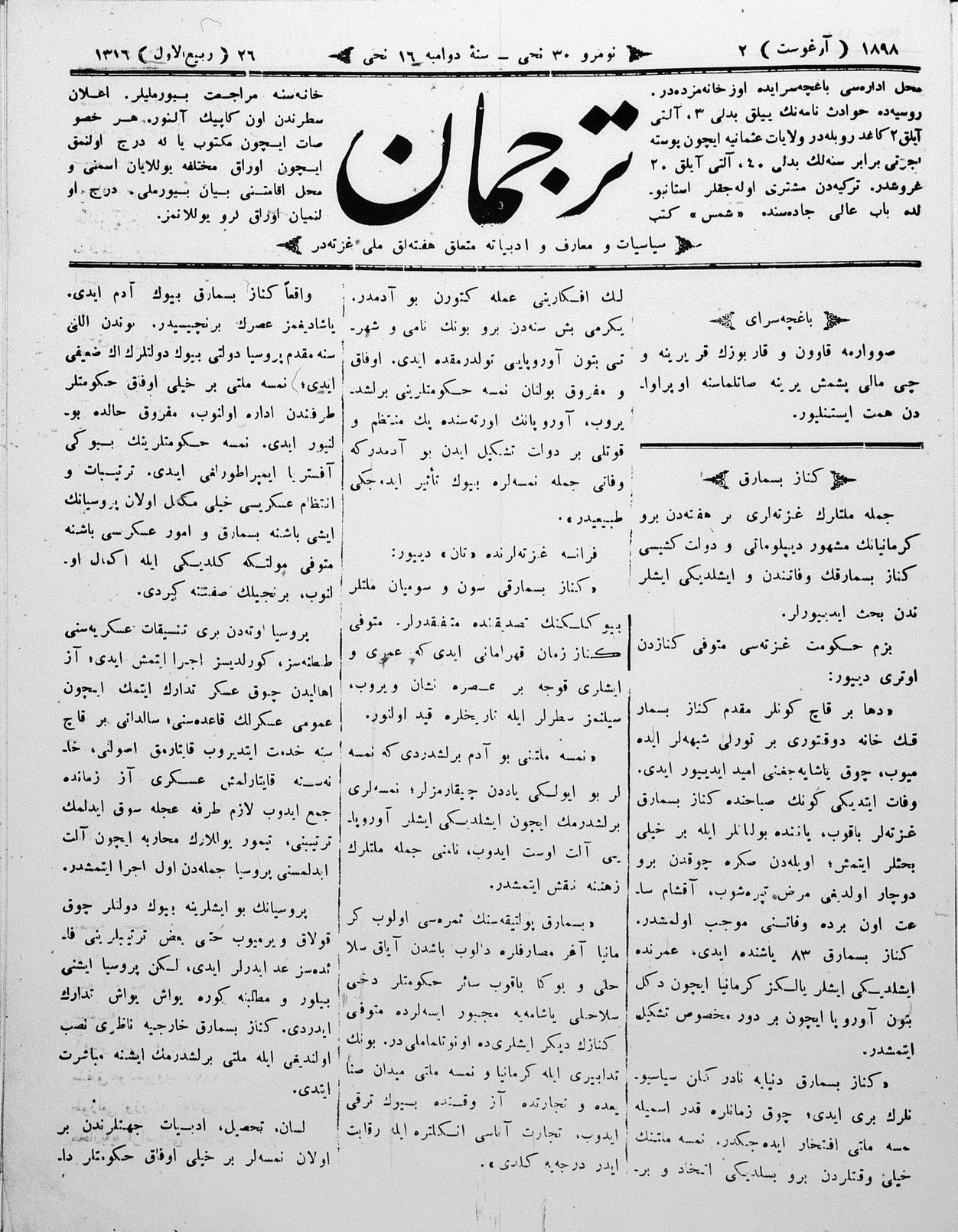 The name of the newspaper changed to Tercüman-ı Ahval-i Zaman in 1905. In 1909, it started to be published under its first name, Tercüman.