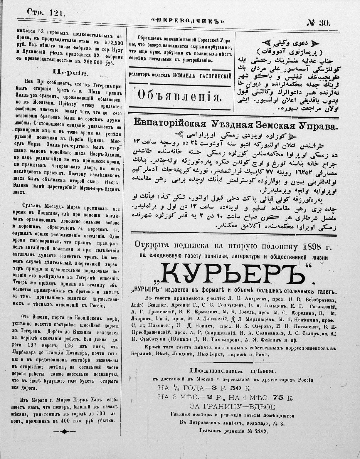 Turkish-Russian newspaper published in Crimea by İsmail Gaspıralı.