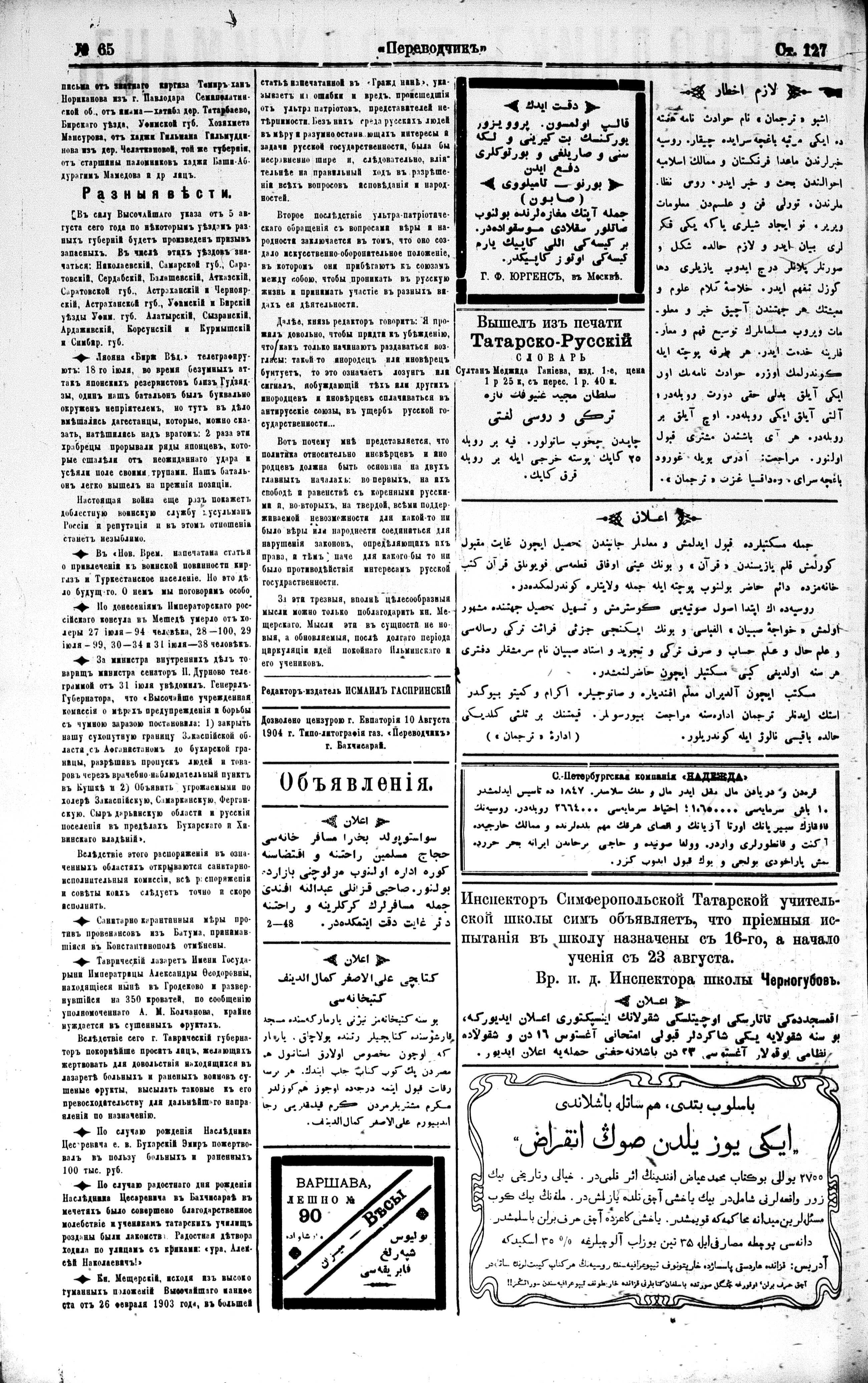 Turkish-Russian newspaper published in Crimea by İsmail Gaspıralı.