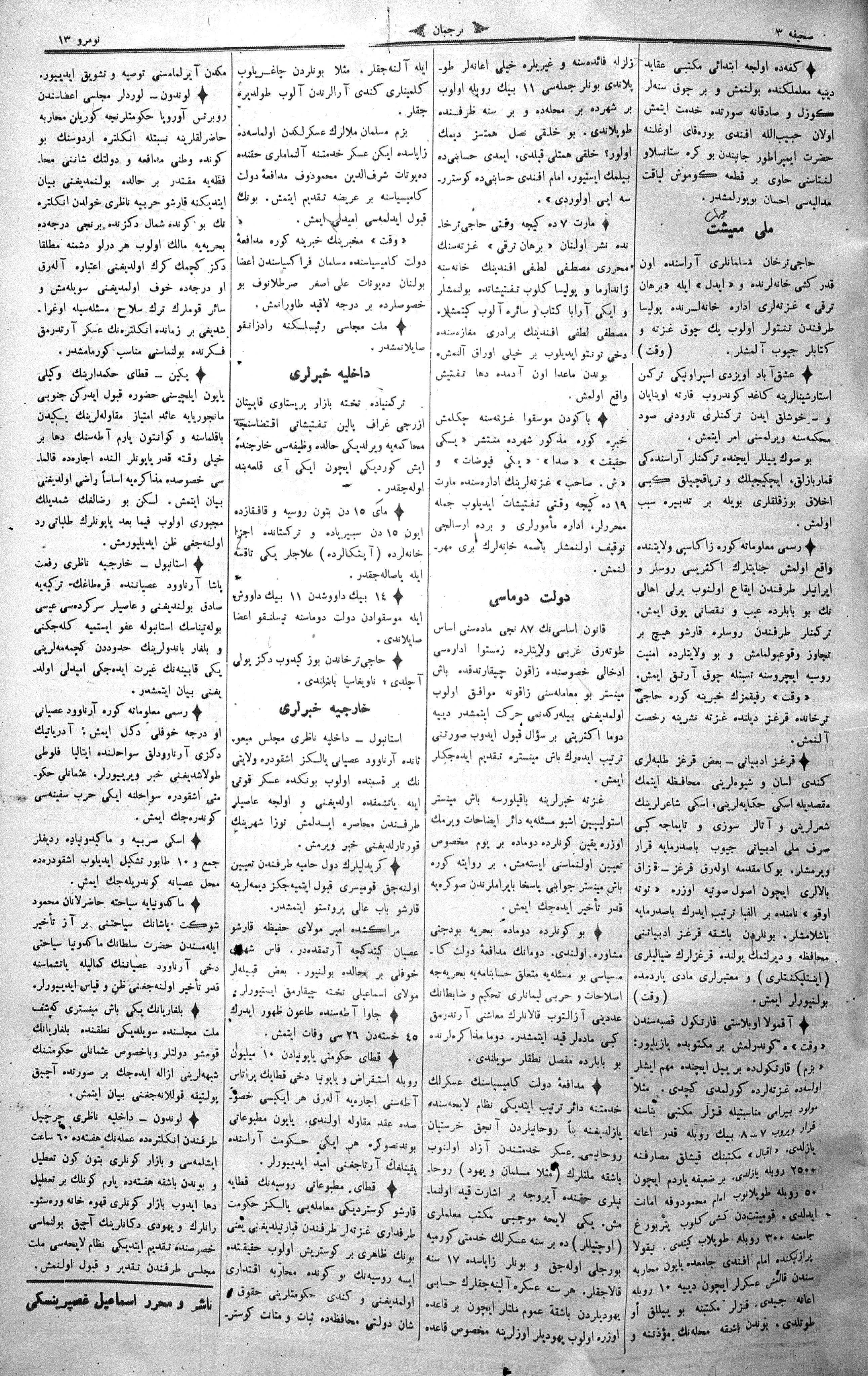 Tercüman, 25 March 1911 Year 29 No 13