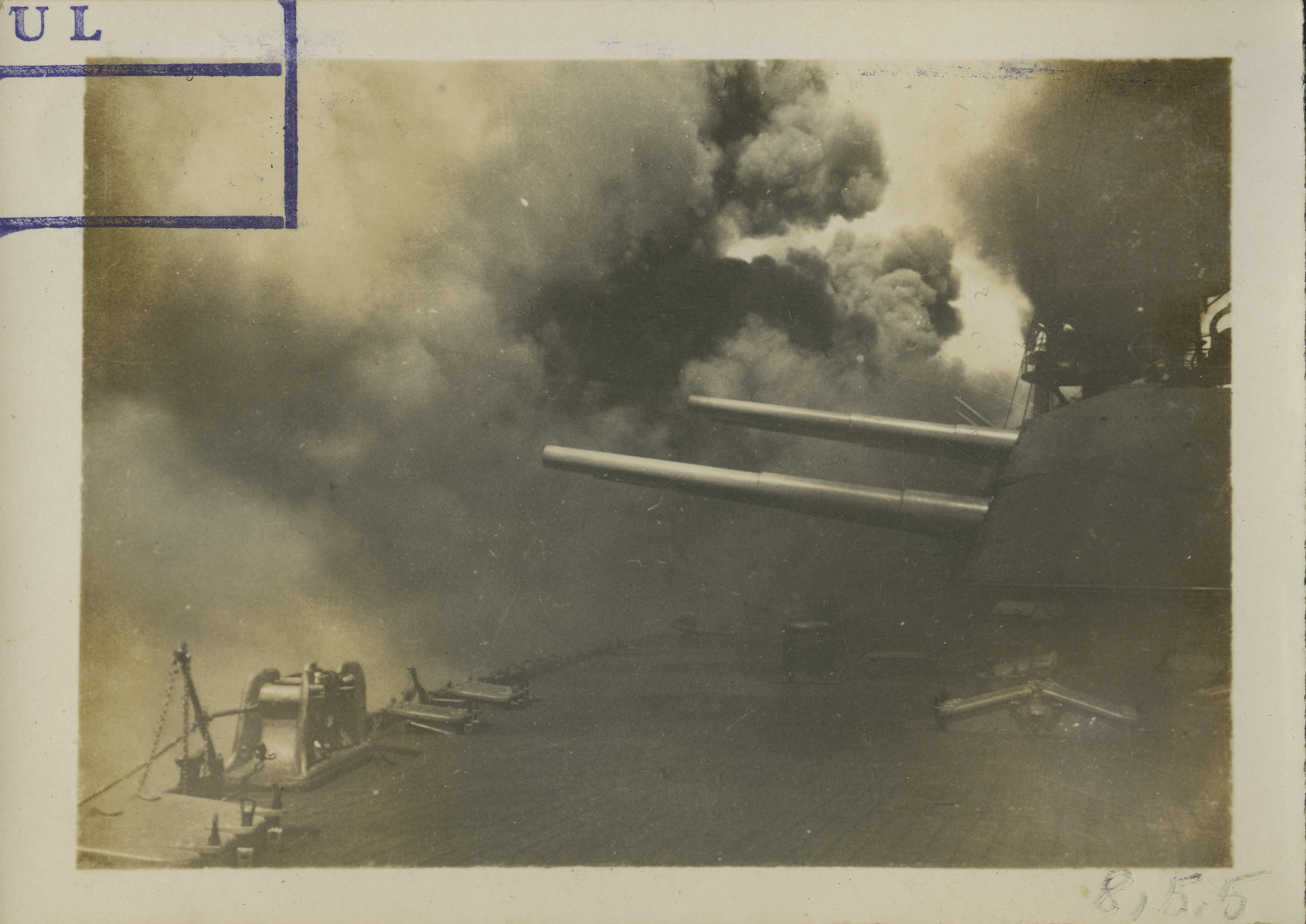 Deniz manevrasında Türk donanma gemilerinden birinde top atılırken
