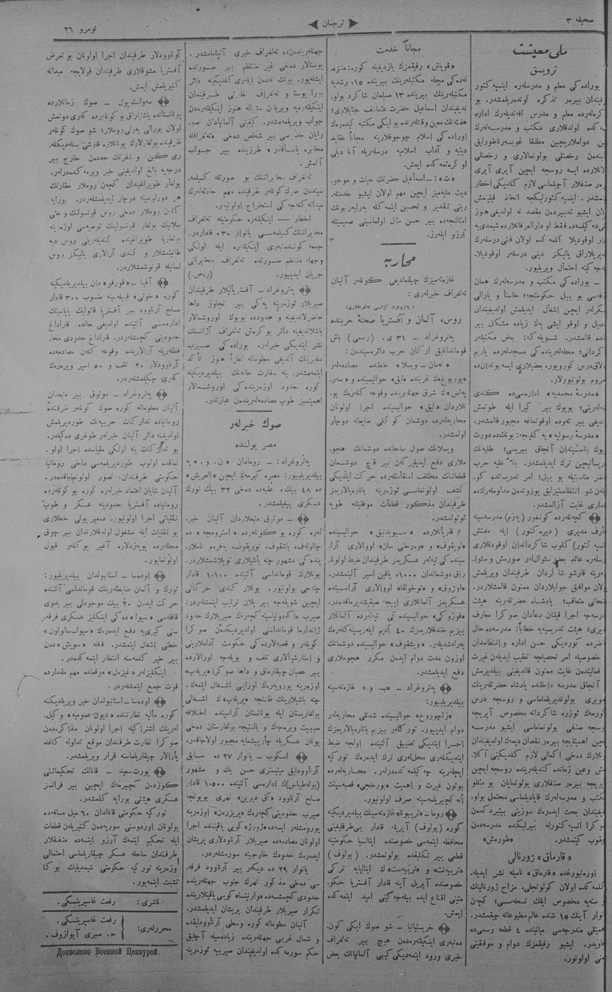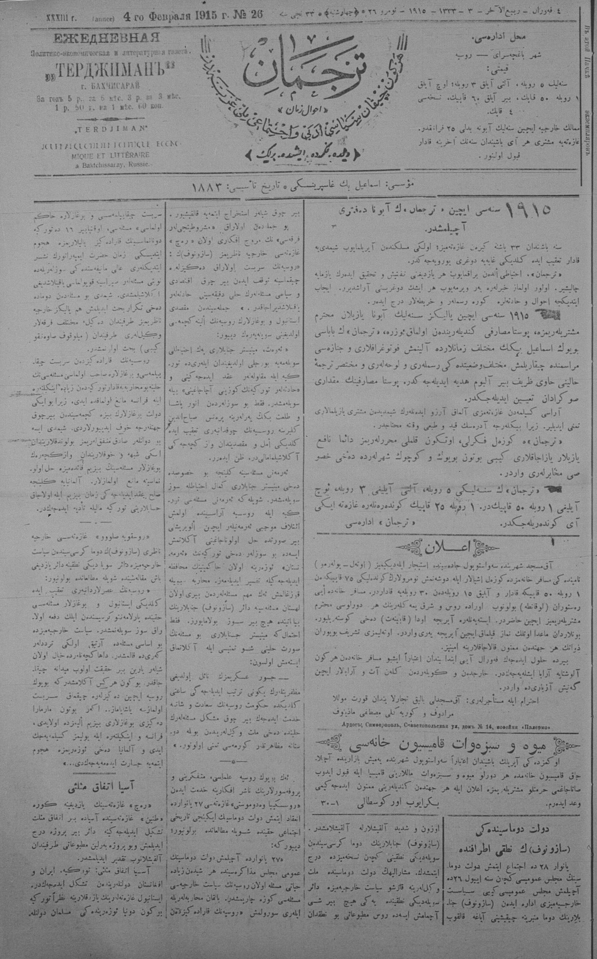 Tercüman, 04 February 1915 Year 33 No 26