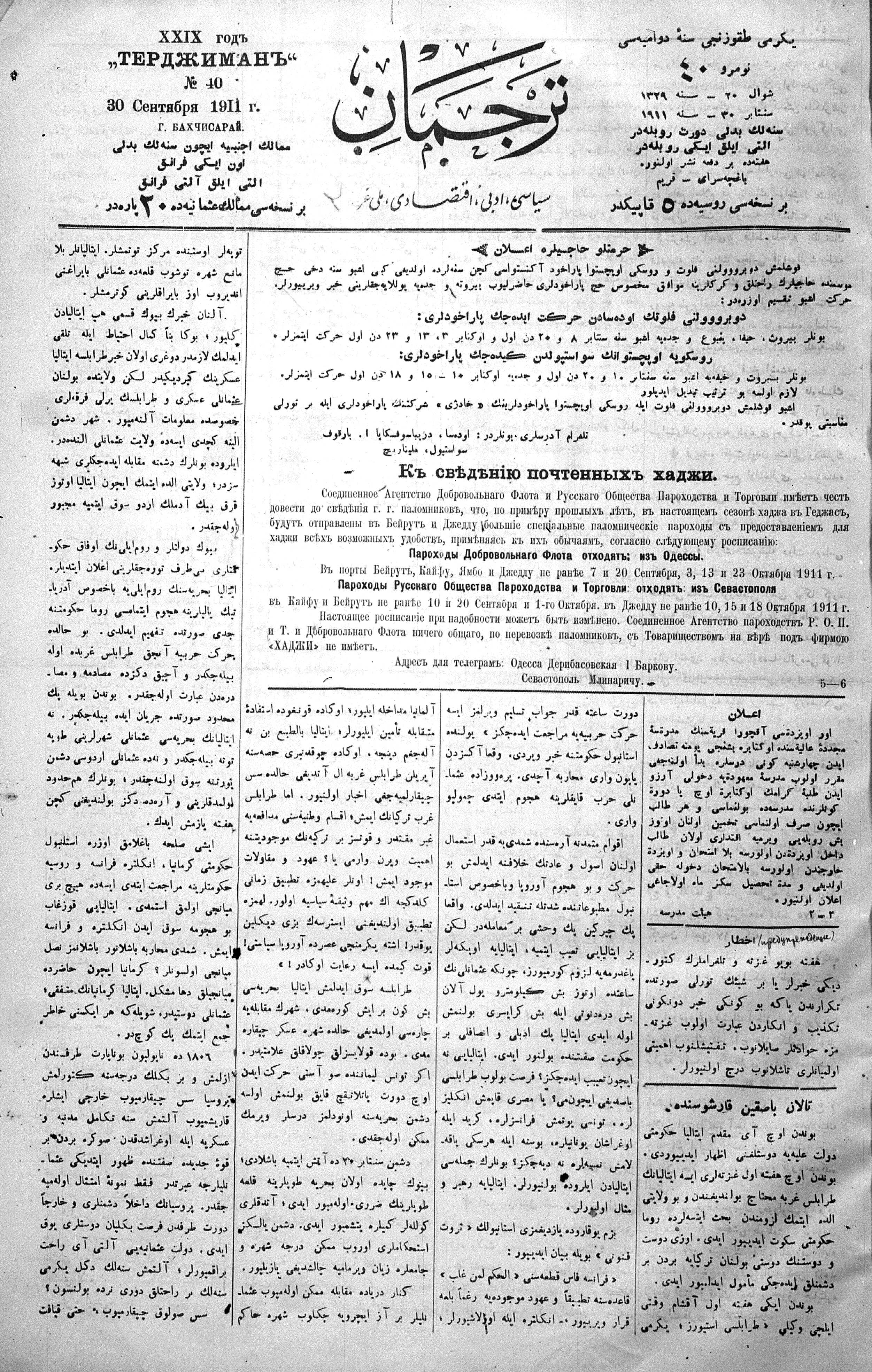 Tercüman, 30 September 1911 Year 29 No 40