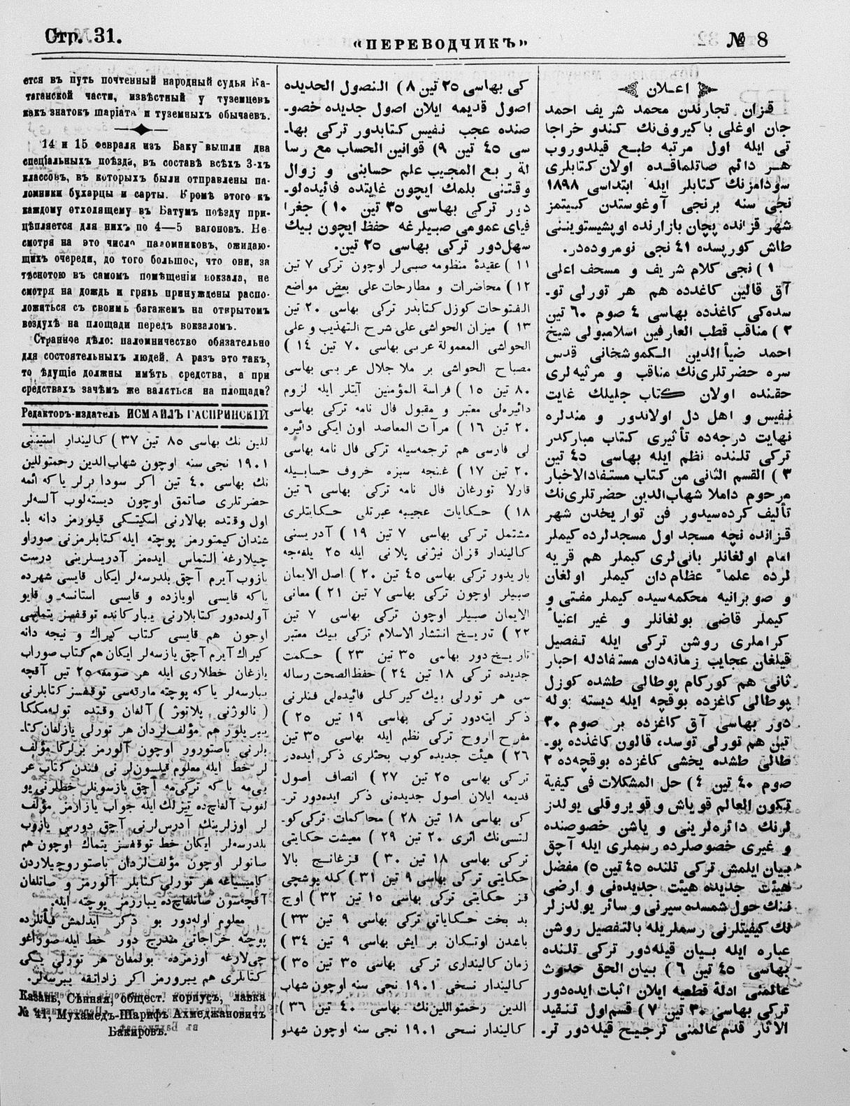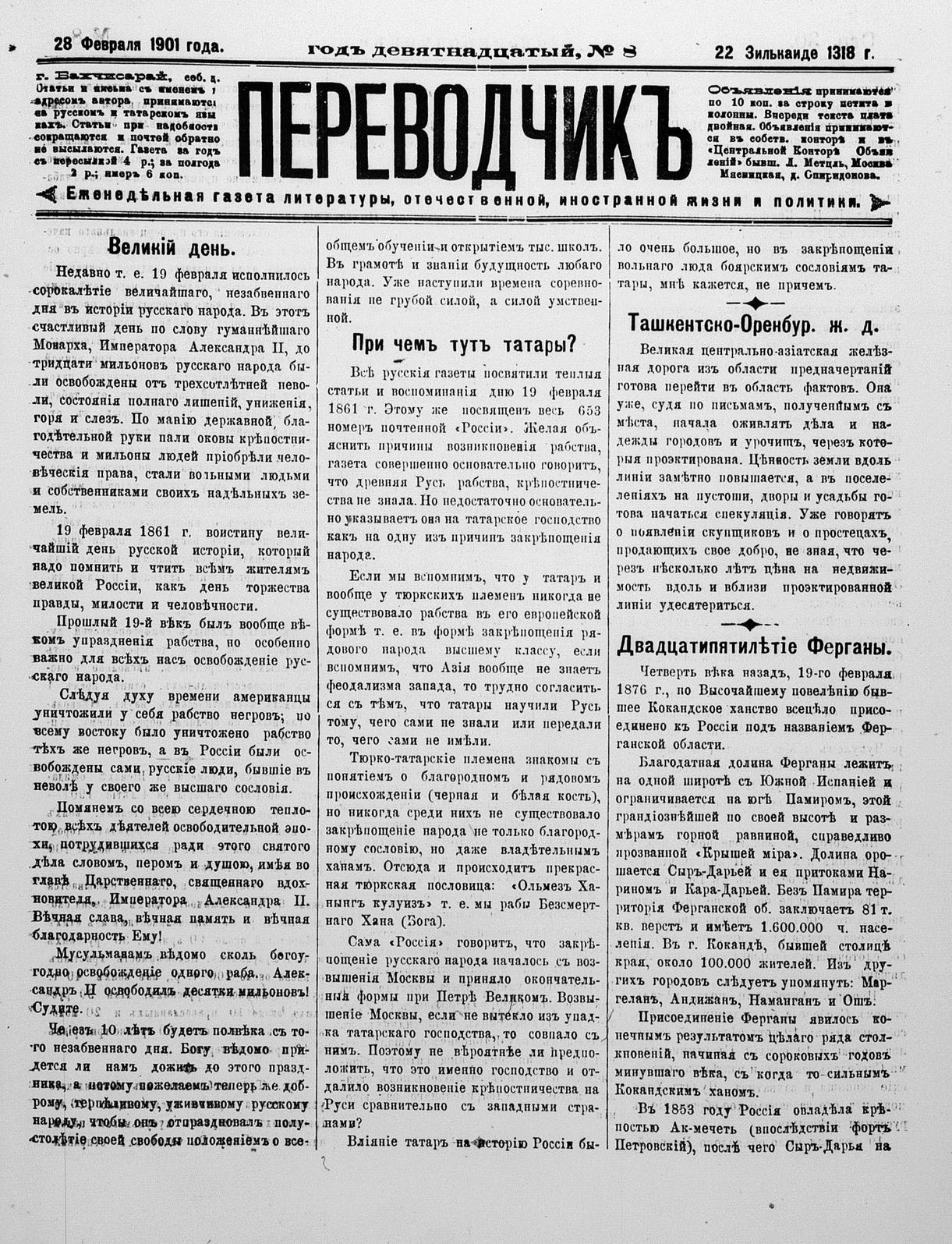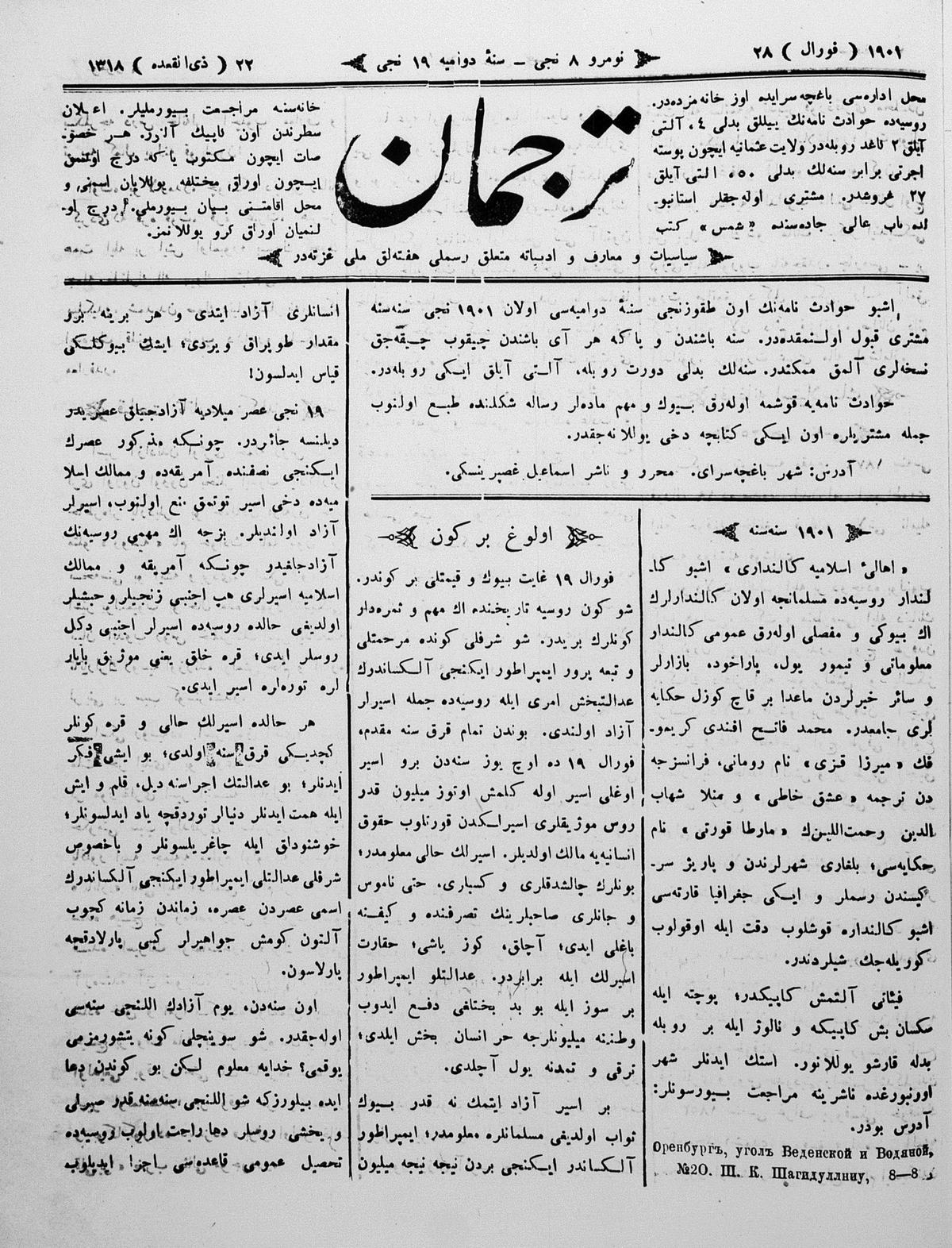 Turkish-Russian newspaper published in Crimea by İsmail Gaspıralı.