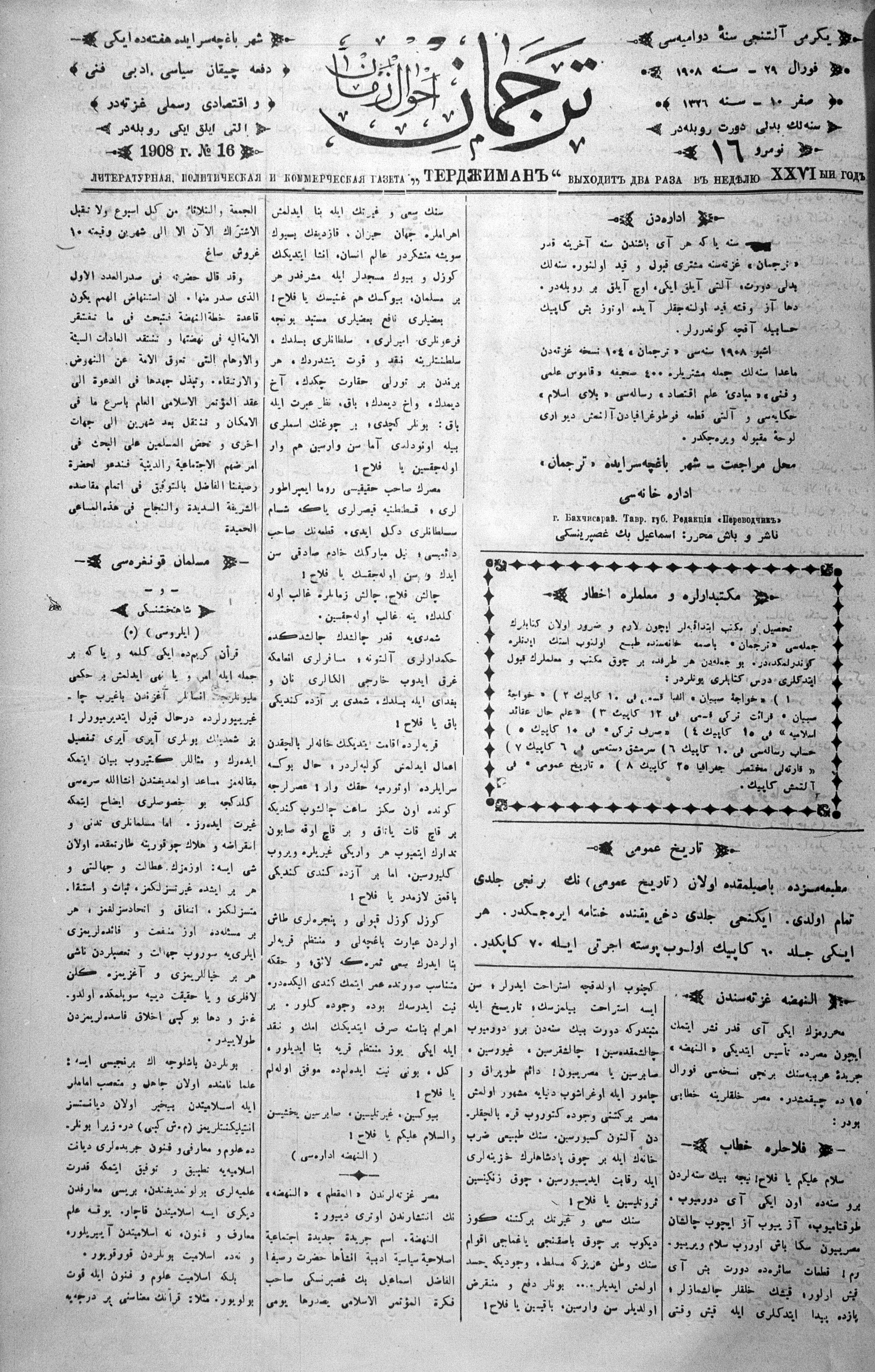 Turkish-Russian newspaper published in Crimea by İsmail Gaspıralı.