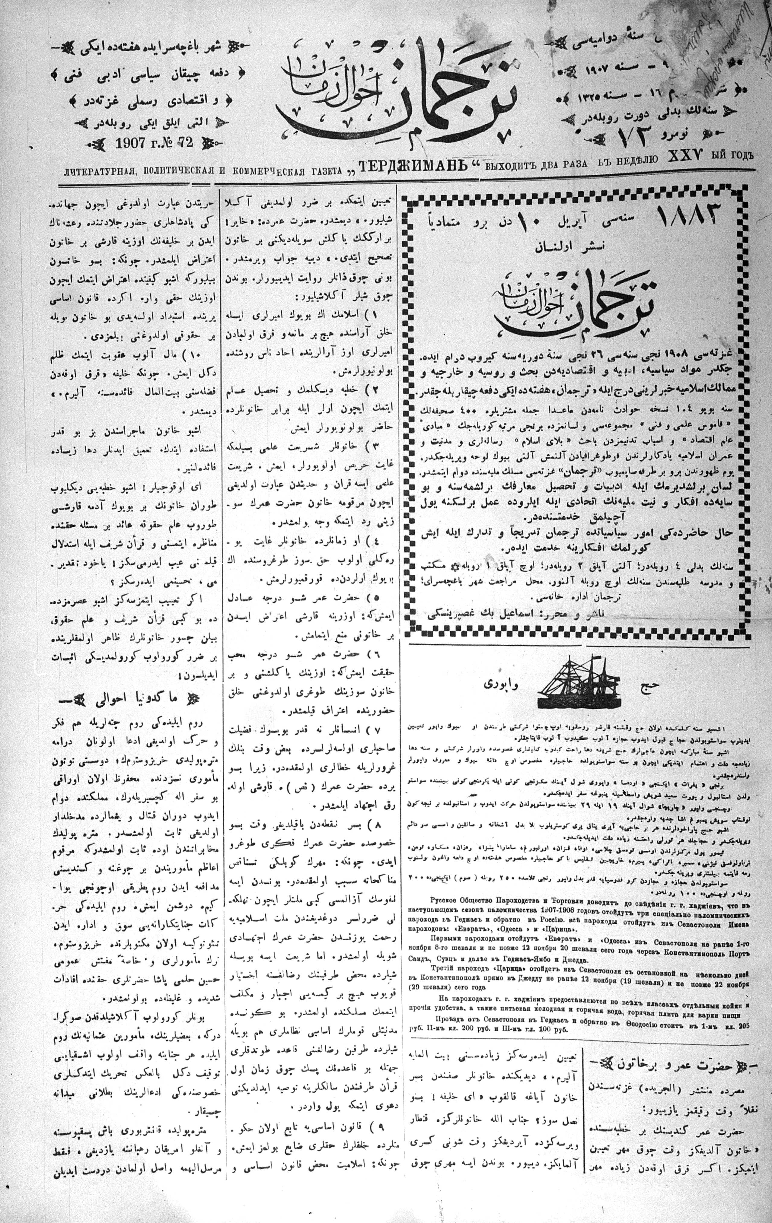 Turkish-Russian newspaper published in Crimea by İsmail Gaspıralı.