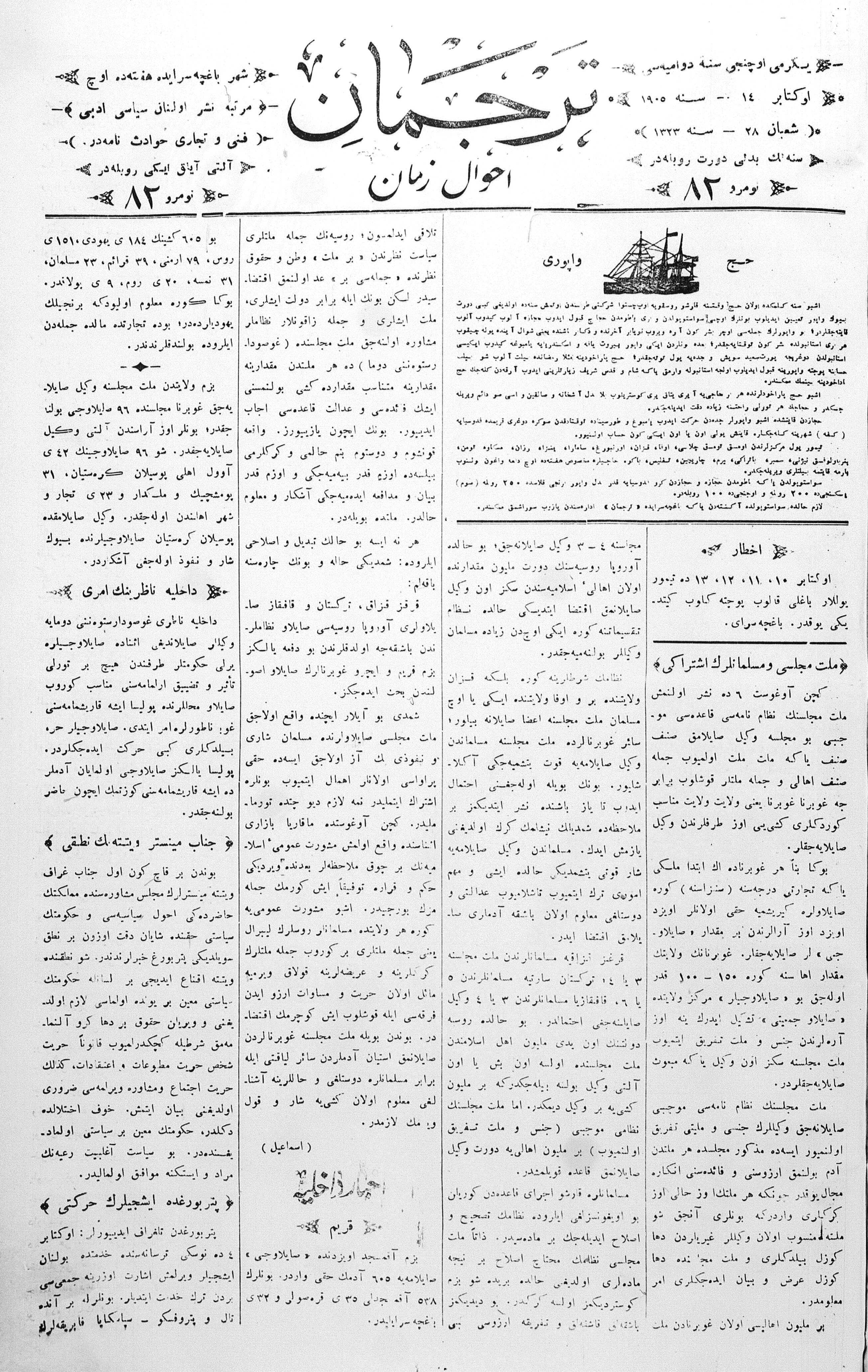 The name of the newspaper changed to Tercüman-ı Ahval-i Zaman in 1905. In 1909, it started to be published under its first name, Tercüman.